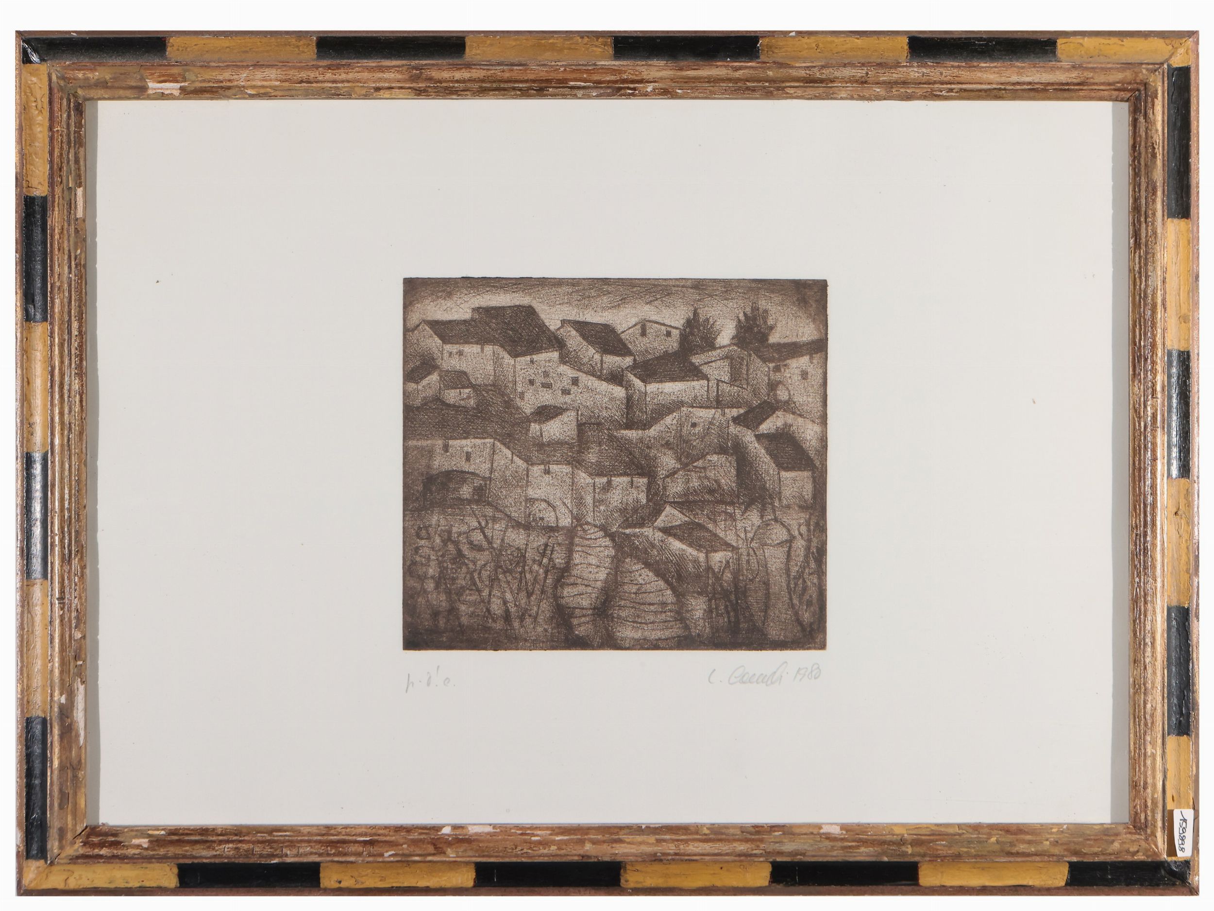 XX secolo firmate L. Cammilli: un disegno Angelo 2001 tecnica mista su carta, titolato, datato e firmato, in cornice, cm 33,5x42; tre acqueforti: Gatto, titolata e firmata, in cornice, cm15,5x9; Paesaggio 2003, datata e siglata, in cornice, matrice cm 10x16 foglio cm 17,5x21,5; Paesaggio e case 1980,es p.d.a., titolata, datata e firmata, in cornice, matrice cm 30x25 foglio cm50x35; Bovi 1976, litografia, es 8/12, titolata, datata e firmata,, in cornice, foglio cm 60x40