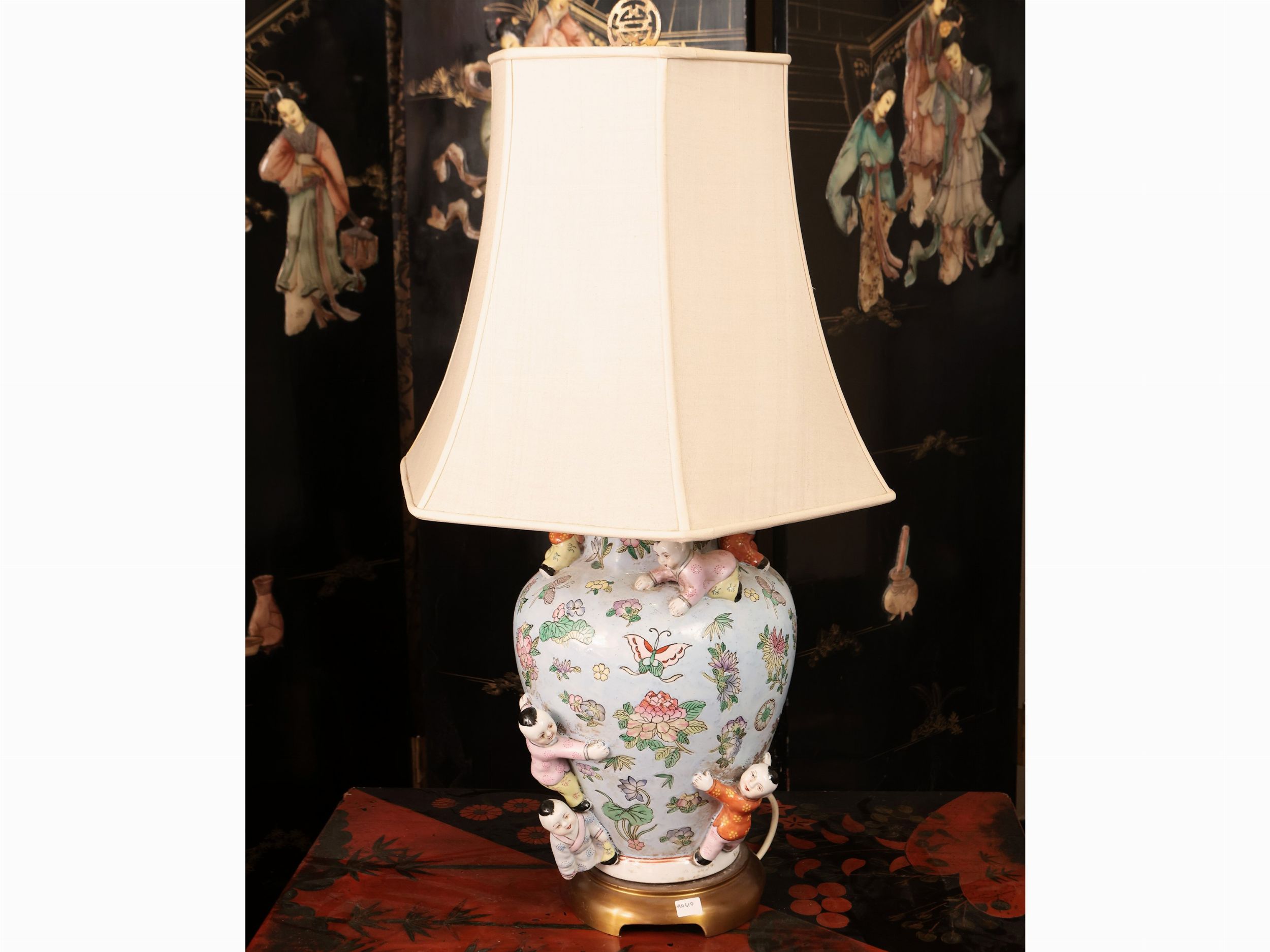 Cina, XX secolo decorato con applicazioni di bambini a tutto tondo che si arrampicano