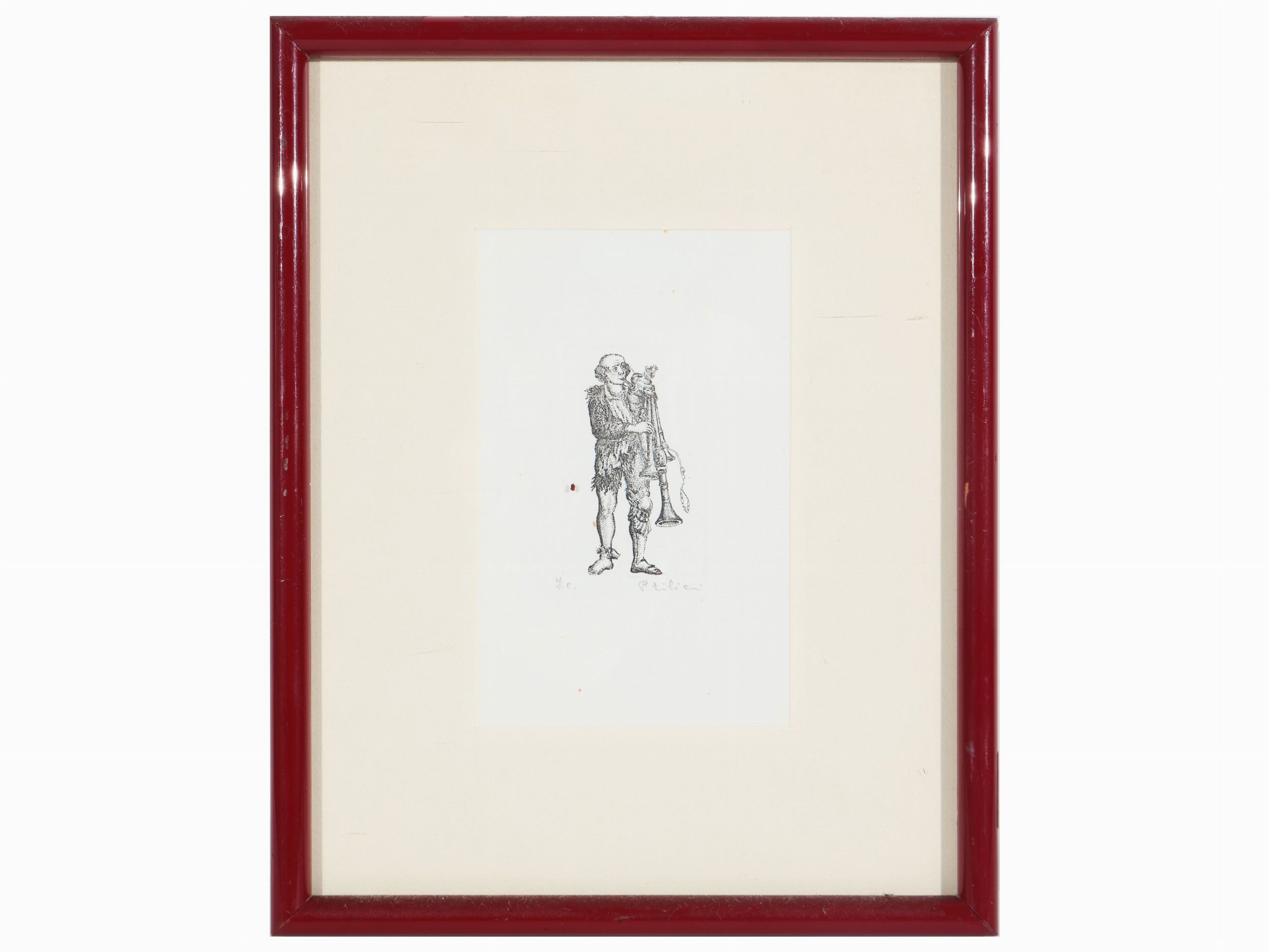 XX secolo incisione, es f.c., firmata P. Lilici, in cornice