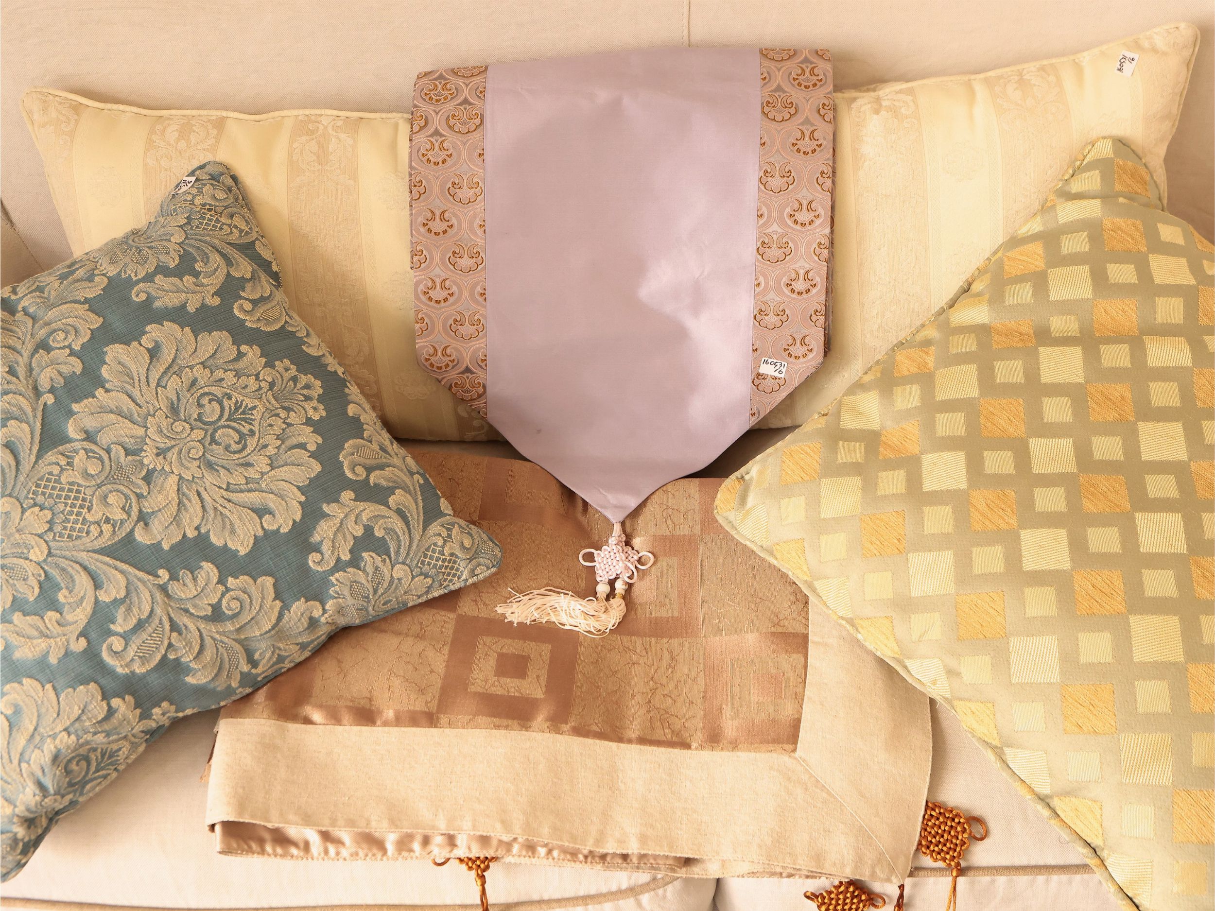Quattro cuscini in tessuti fantasia