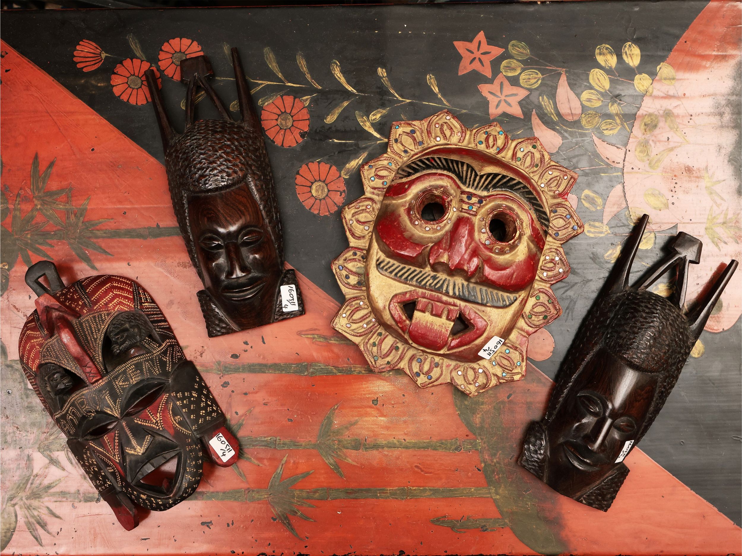 Quattro maschere lignee orientali