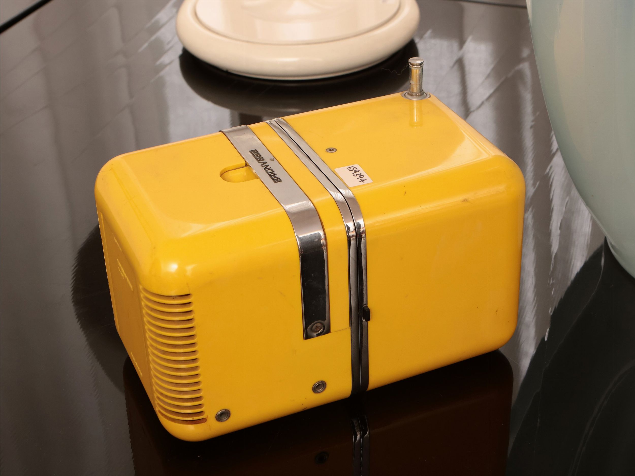 Anni Sessanta realizzata come un cubo in plastica color giallo, alcuni difetti
