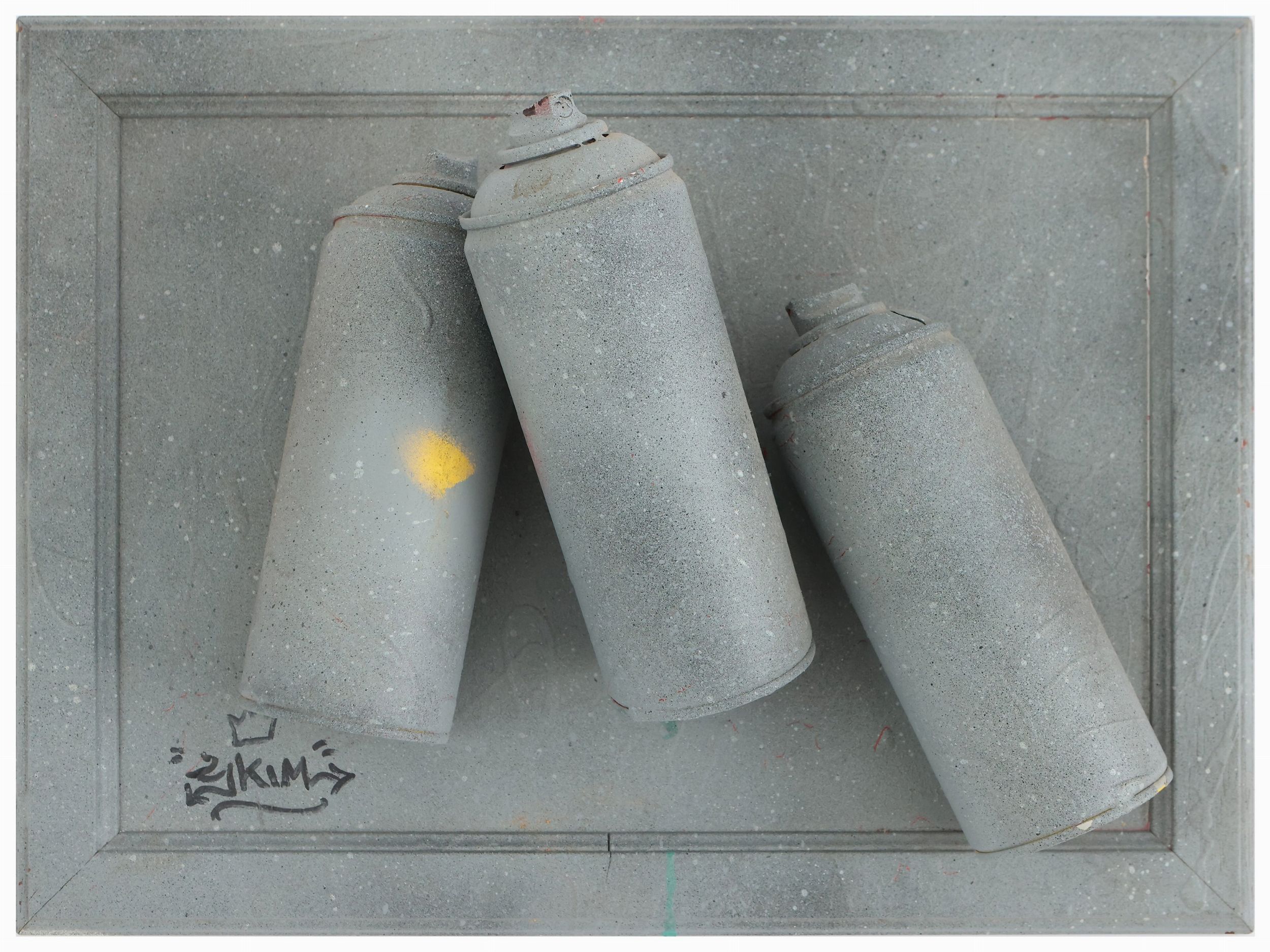 alluminio, tecnica mista su faesite in cornice di legno dipinta a spray, firmata, titolata e firmata al verso