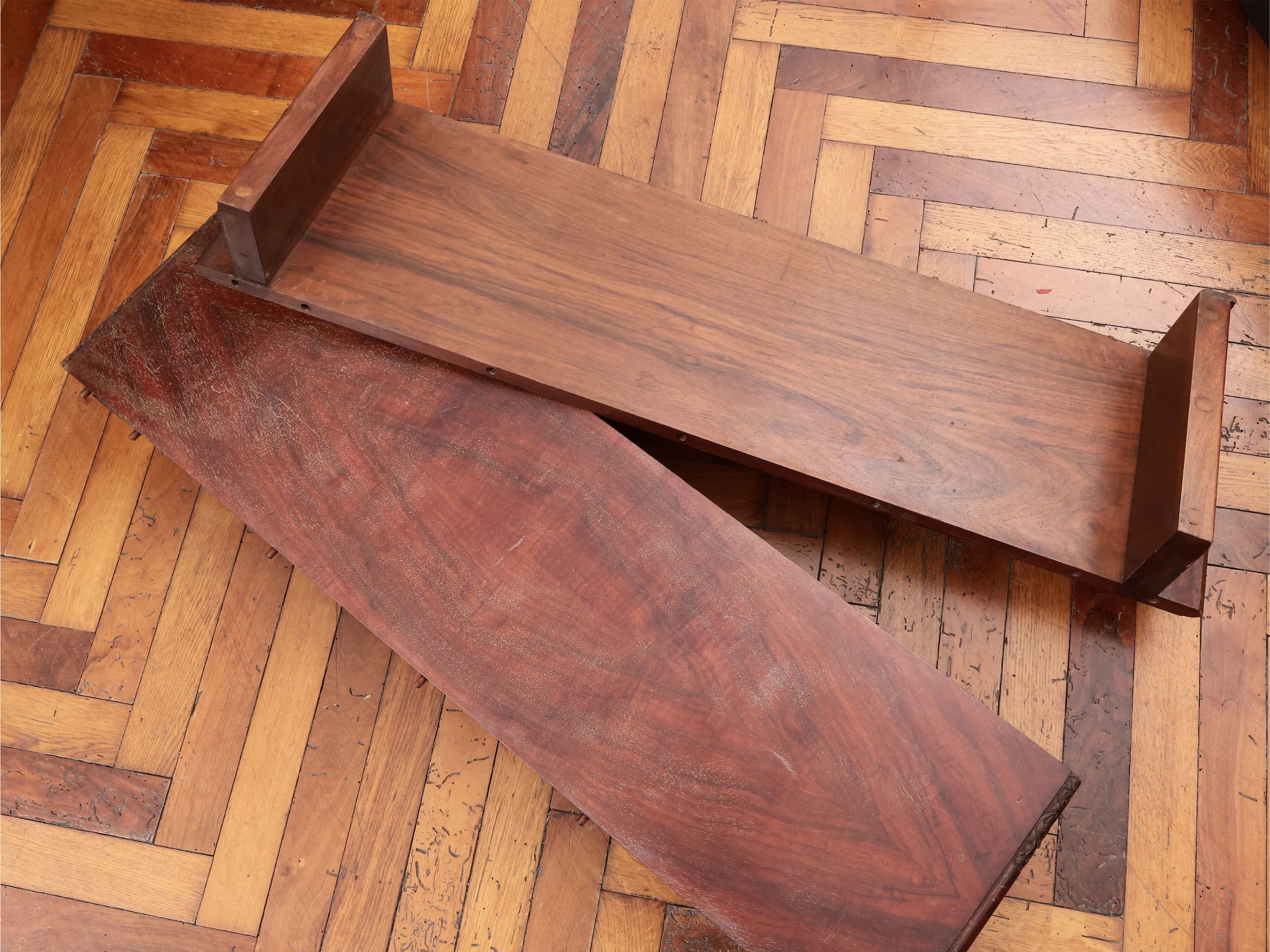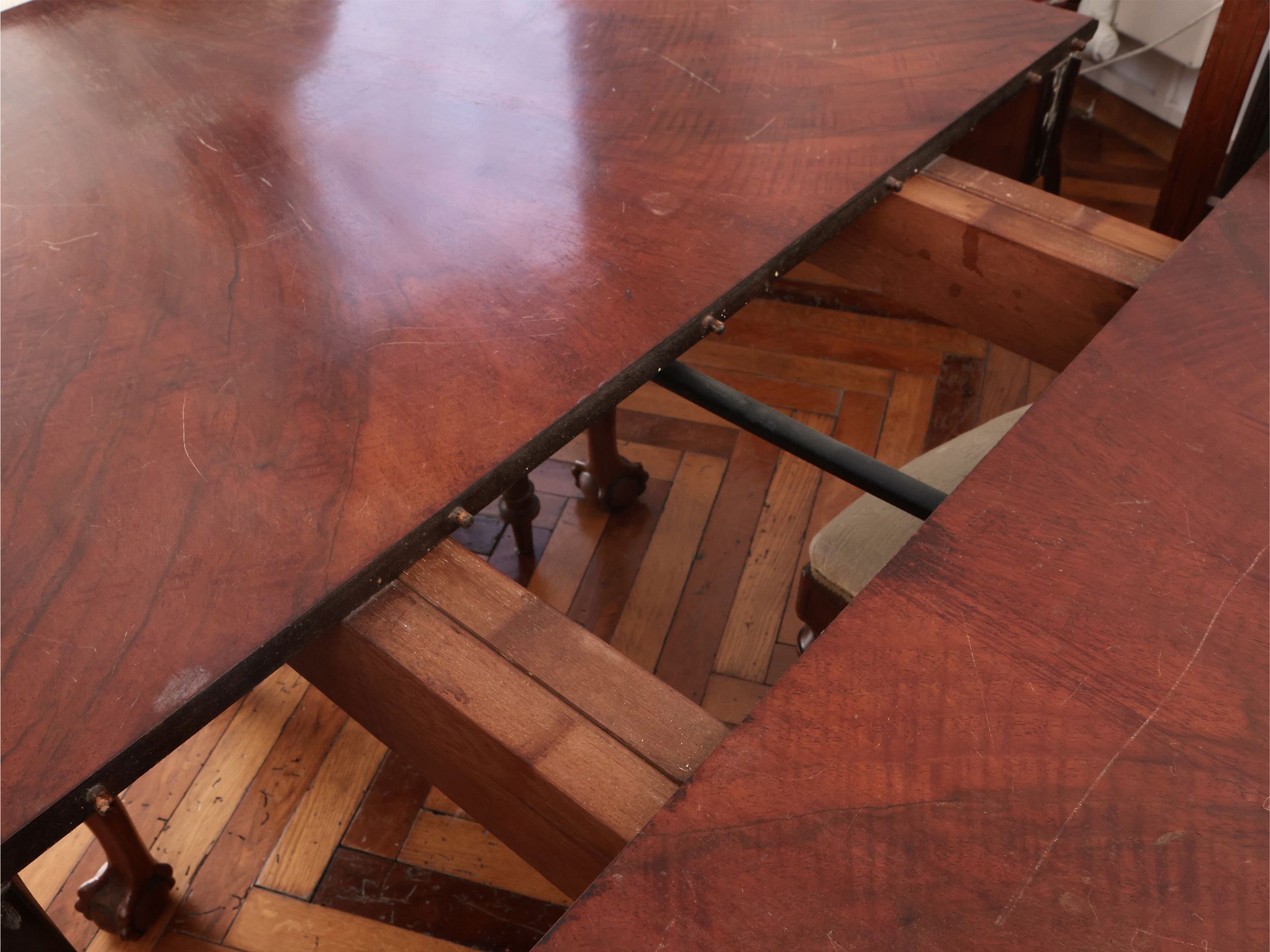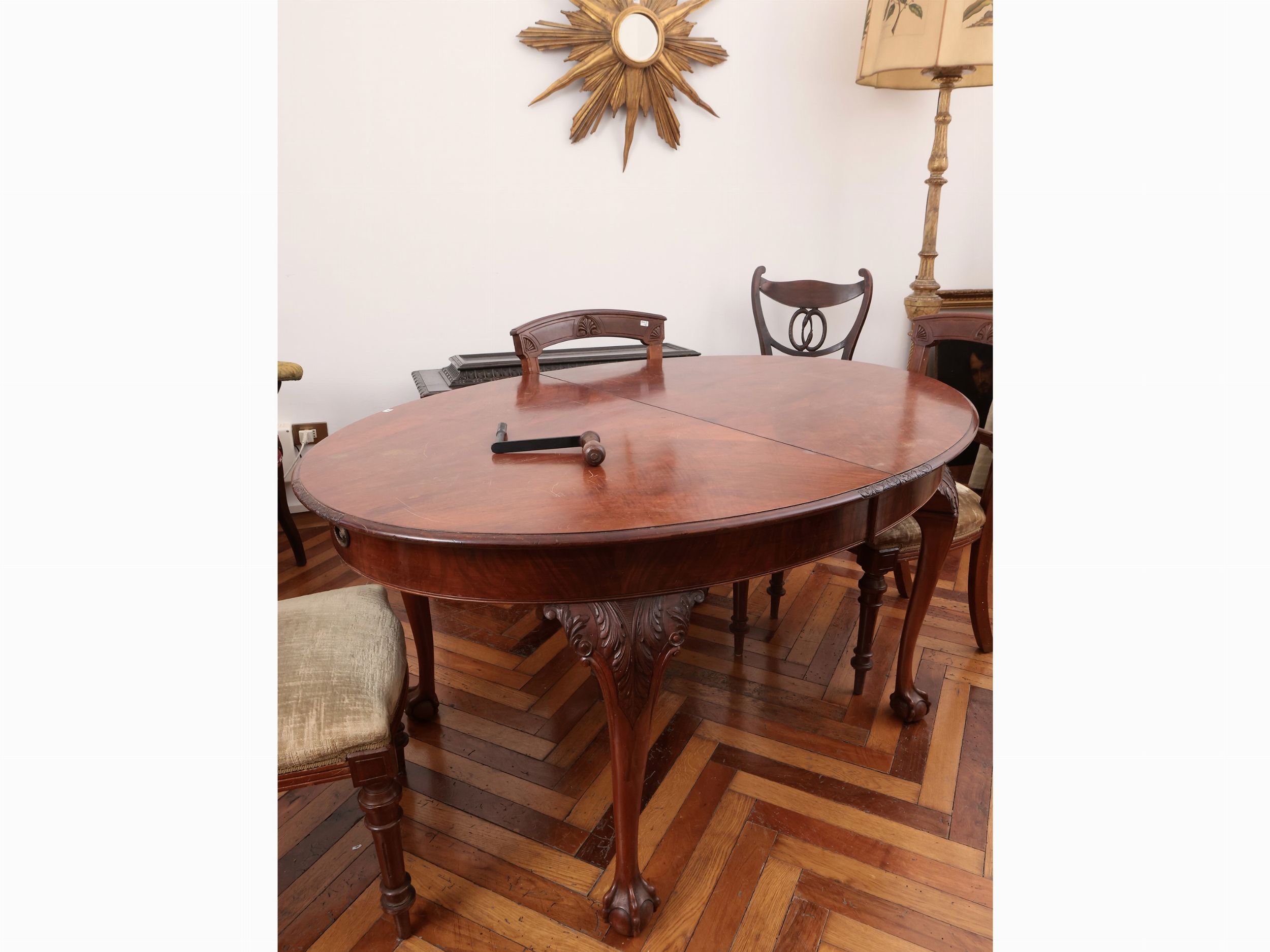 metà del XIX secolo piano di forma ovale, gambe lievemente mosse intagliate con motivo di foglie d'acanto, completo di prolunghe, lievi difetti