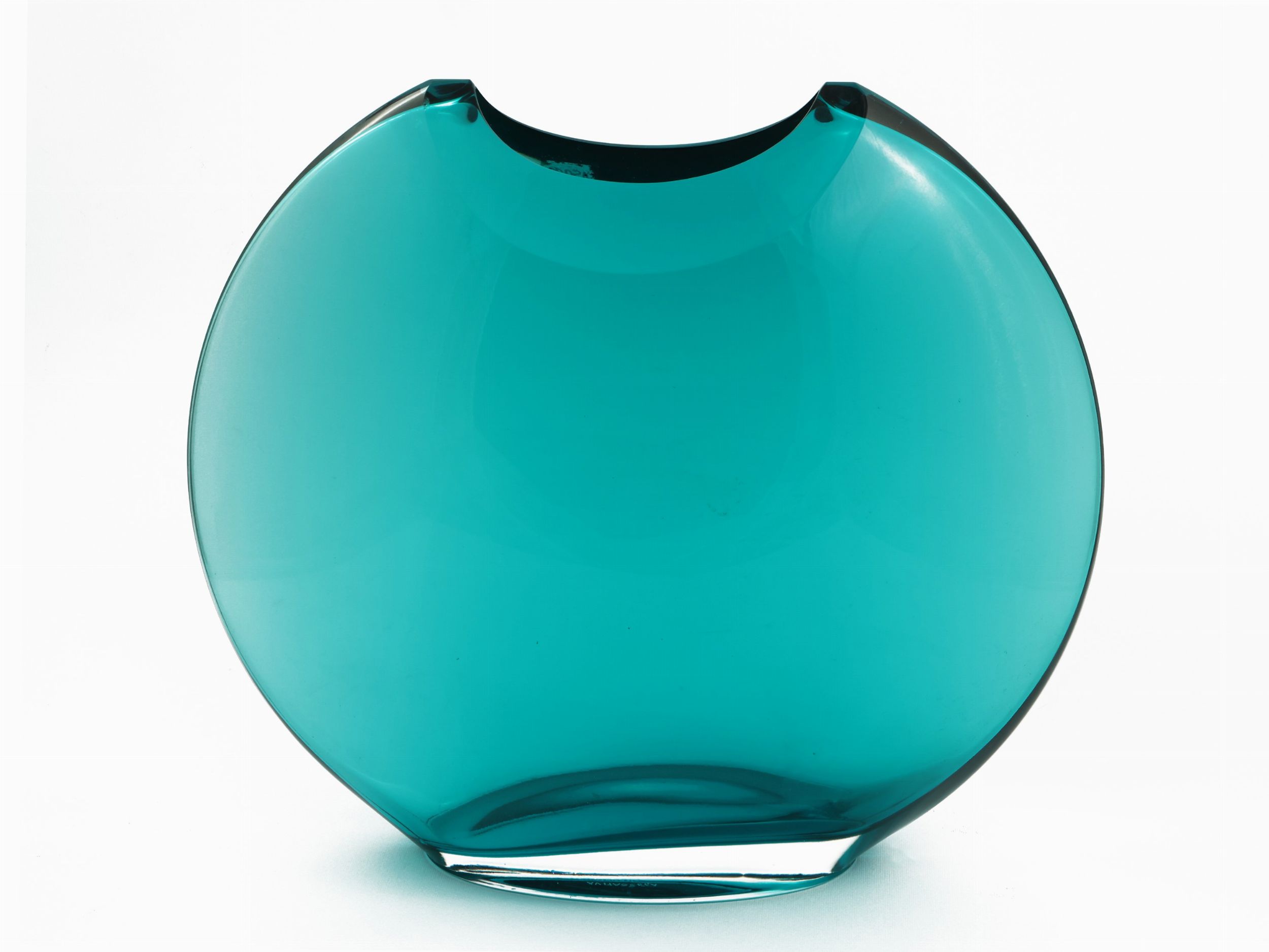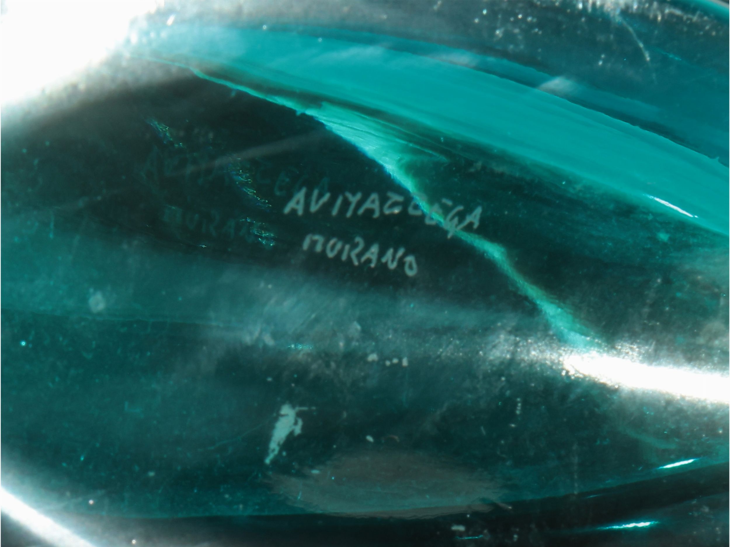 Murano, Italia XX sec. in vetro color acquamarina, con bocca incisa. Firma a punta sotto la base AV Mazzega, lievi difetti.