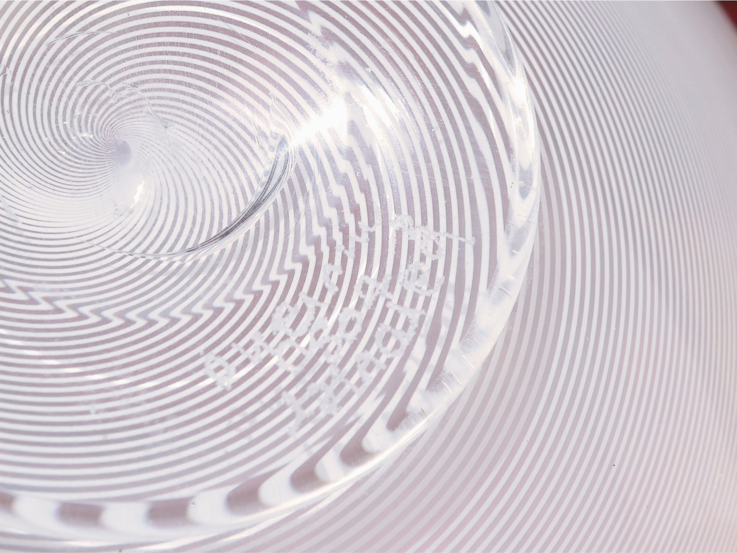 Murano, Italia seconda metà del XX sec. in vetro e filigrana lattimo con bordo-collo turchese. Etichetta originale d'epoca.