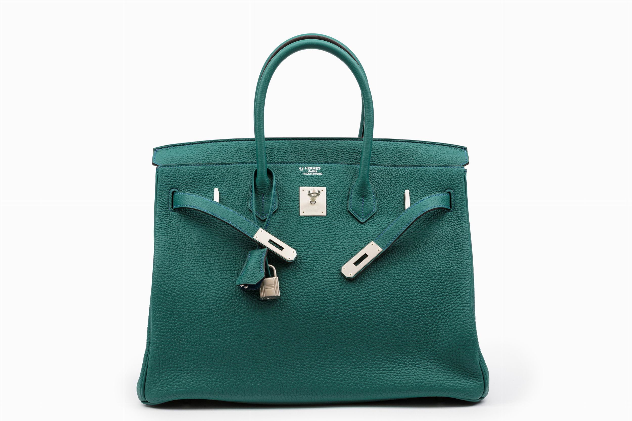 2013 in pelle togo color vert anglais con interno color blu, dettagli in metallo satinato, con sacchetto (lievissimi difetti)