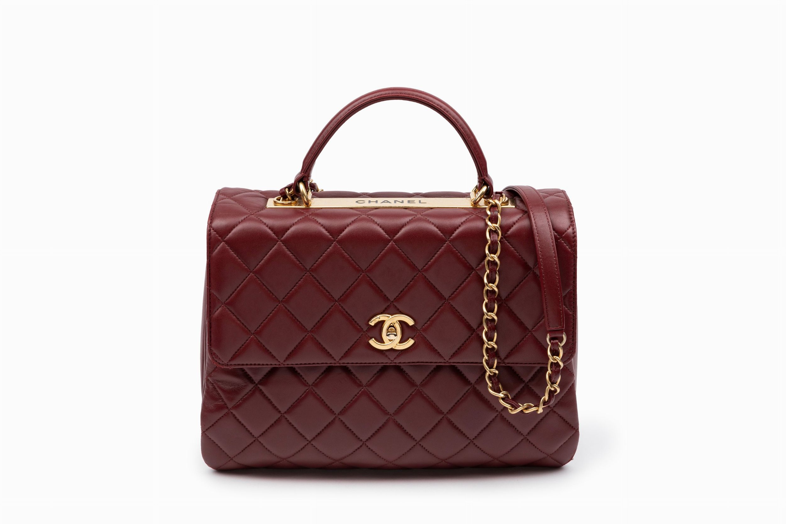 2015 in pelle matelassé color bordeaux con tracolla staccabile, dettagli in metallo dorato, cm 33 (lievi difetti)