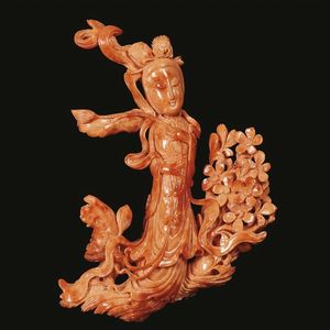 INTAGLIO, CINA, DINASTIA QING, SEC. XIX in corallo, raffigurante quattro divinità femminili. Alt. cm 33 [..]