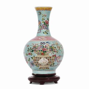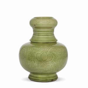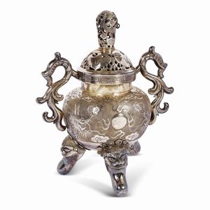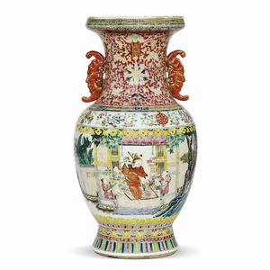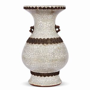 VASO, CINA, DINASTIA QING, SEC. XIX in porcellana Ge Type a forma di Pushou con due manici a forma di creatura [..]