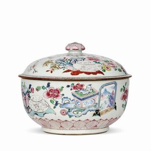 ZUPPIERA, CINA, DINASTIA QING, SEC. XVIII in porcellana policroma della famiglia Rosa, raffigurante all’esterno [..]
