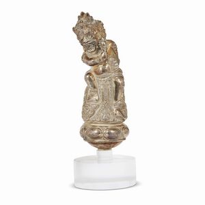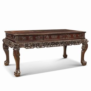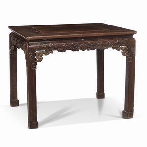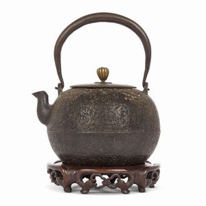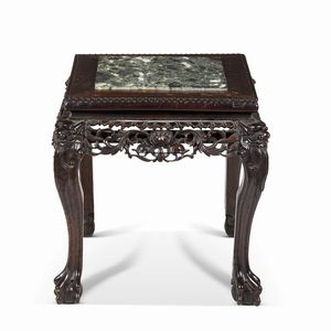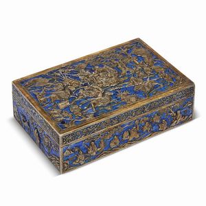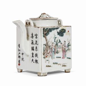 TEIERA QUADRATA, CINA, DINASTIA QING, SEC. XIX decorata con personaggi all'aria aperta e caratteri cinesi, firmato [..]