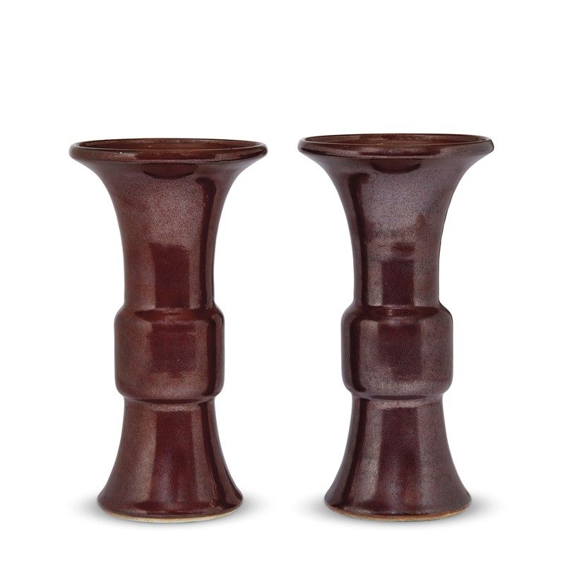 清 十九世纪 紫金釉觚一对 高 21,8厘米