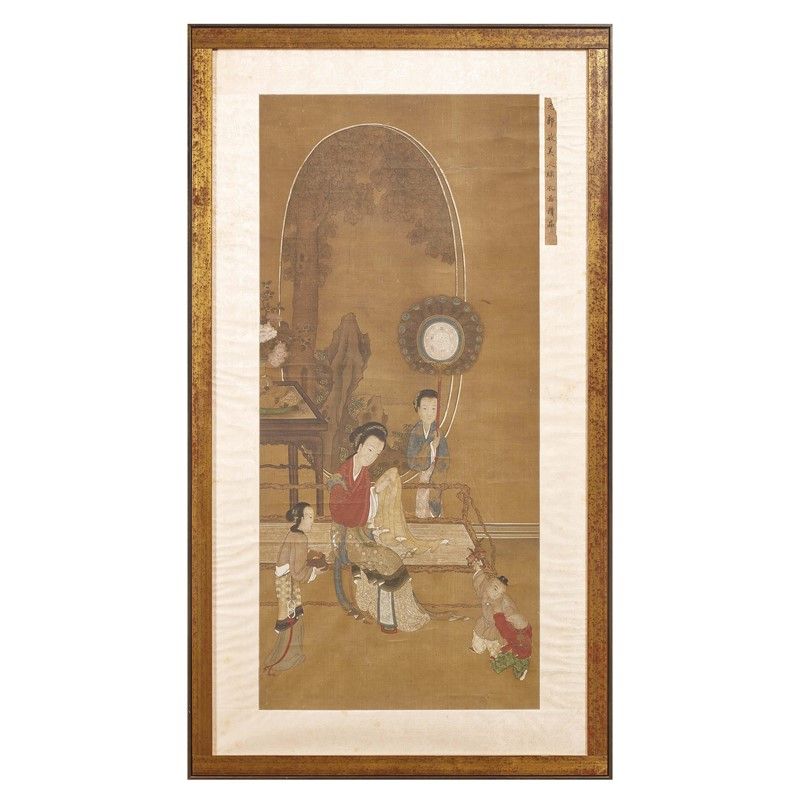清 十八至十九世纪 人物故事图 郭敏款印 绢本设色 尺幅 104x47厘米
