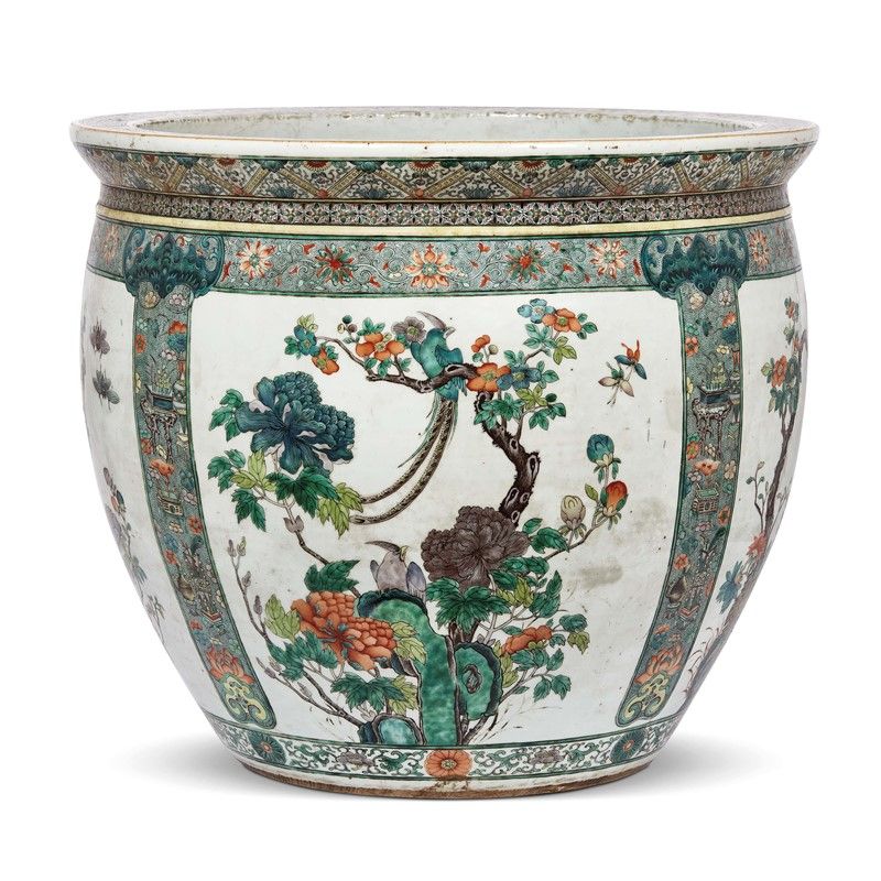 清 十九世纪 五彩四季花鸟纹缸 高 48,6厘米 口径 56,5厘米