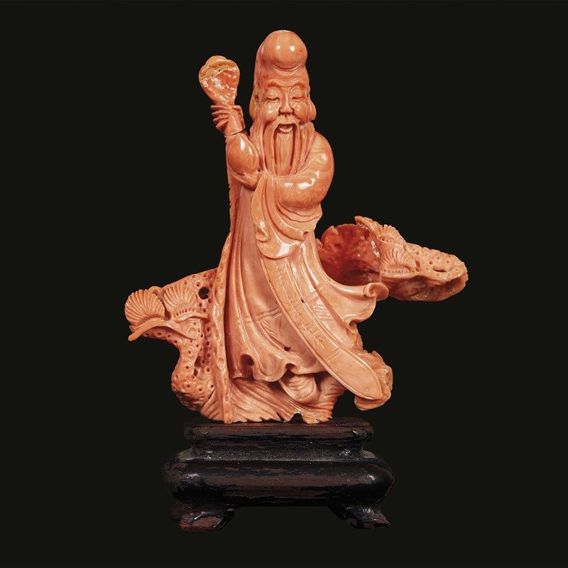 in corallo, raffigurante Shoulao, simbolo di lunga vita.