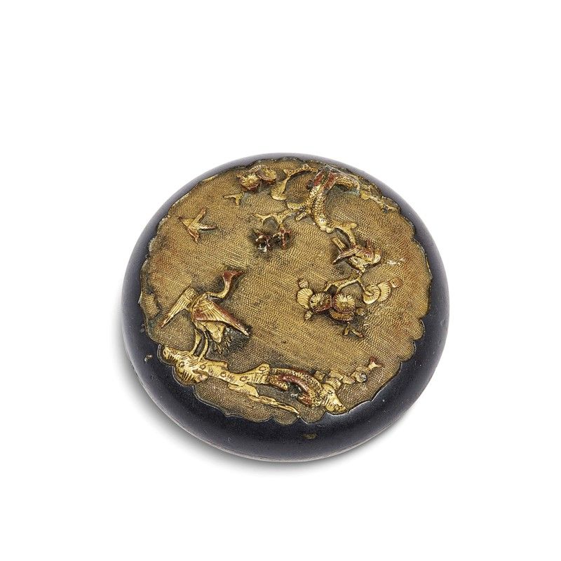 清 十八世纪 铜鎏金花鸟纹香盒 直径 6厘米