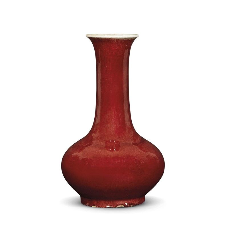 清 十九世纪 祭红釉长颈撇口瓶 高 30厘米