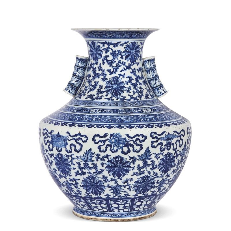 清 十九世纪 青花八宝缠枝莲纹折肩贯耳尊 高 46,5厘米