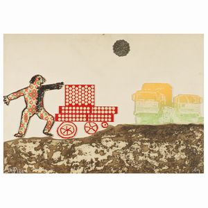 70x49,5 cm. Milano 1924 - Vergiate 2003 Enrico Baj per Iveco, collage su incisione, es. 103/120, firmato in basso [..]