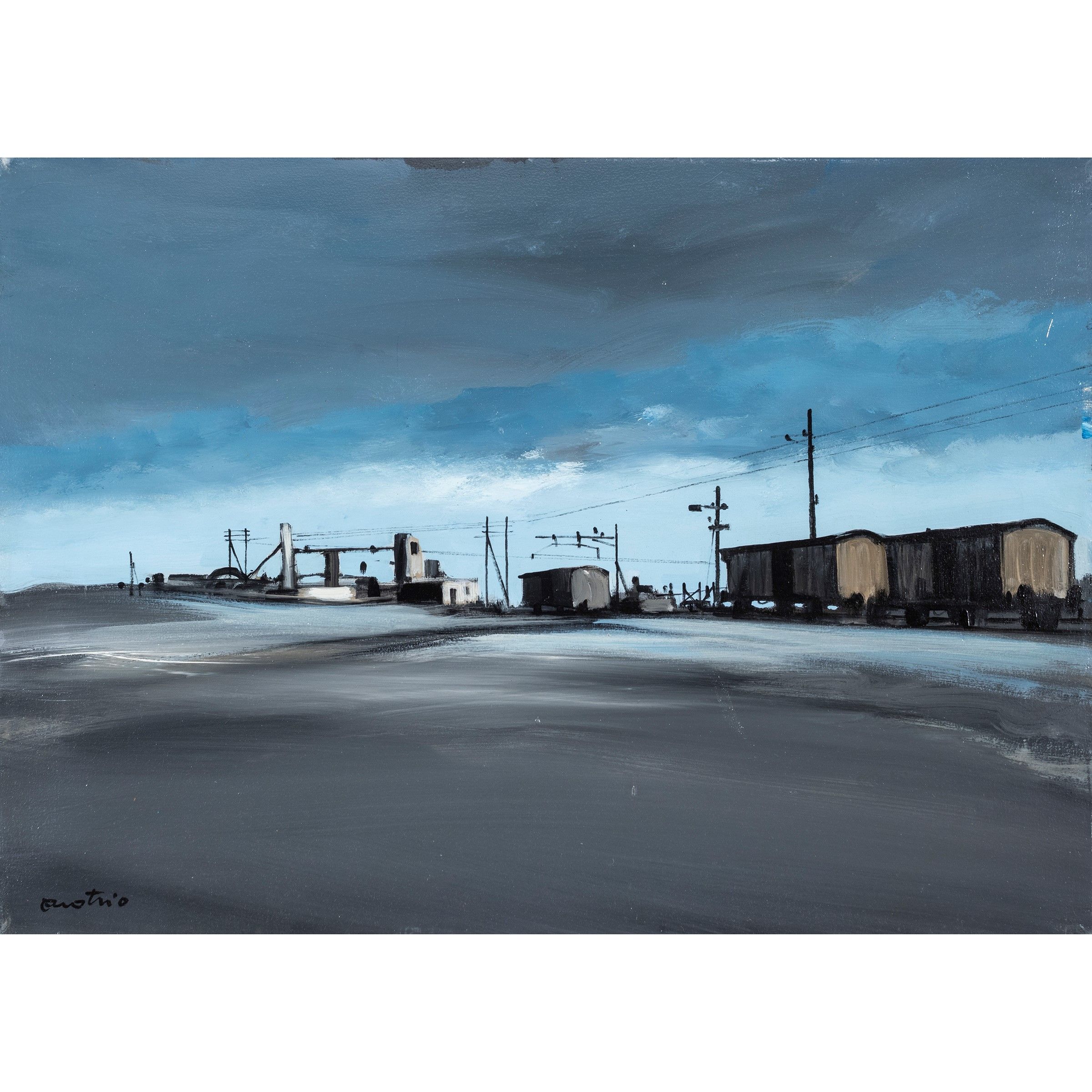 Buenos Aires 1920 - Pizzo 1989 Scalo merci, olio su tela, firmato in basso a sinistra, firmato e titolato sul retro, entro cornice