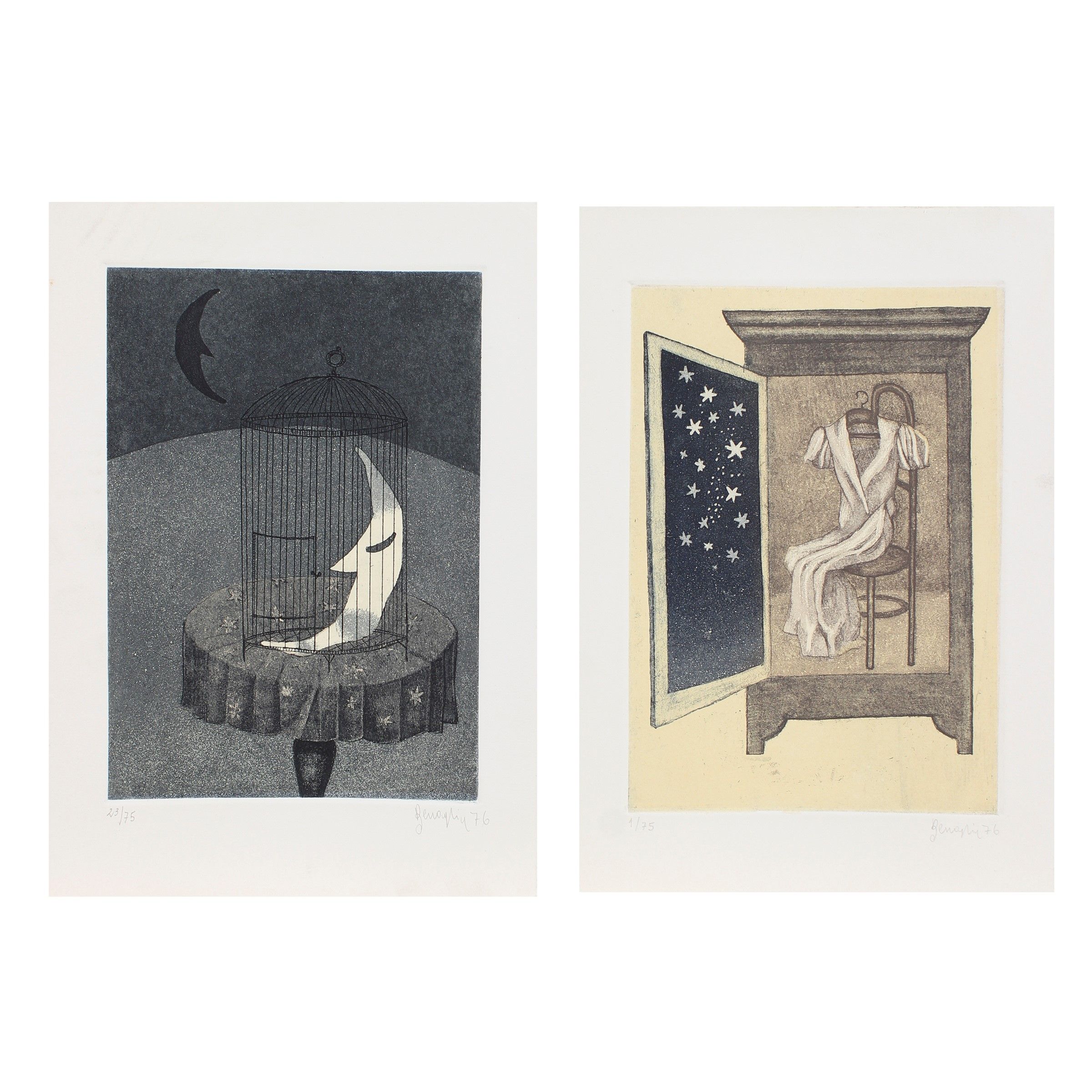 Roma 1938 Il cielo nell'armadio - Un buco nel cielo, 1976, due litografie a colori, es. 1/75 e 23/75, firmate e datate a matita in basso a destra