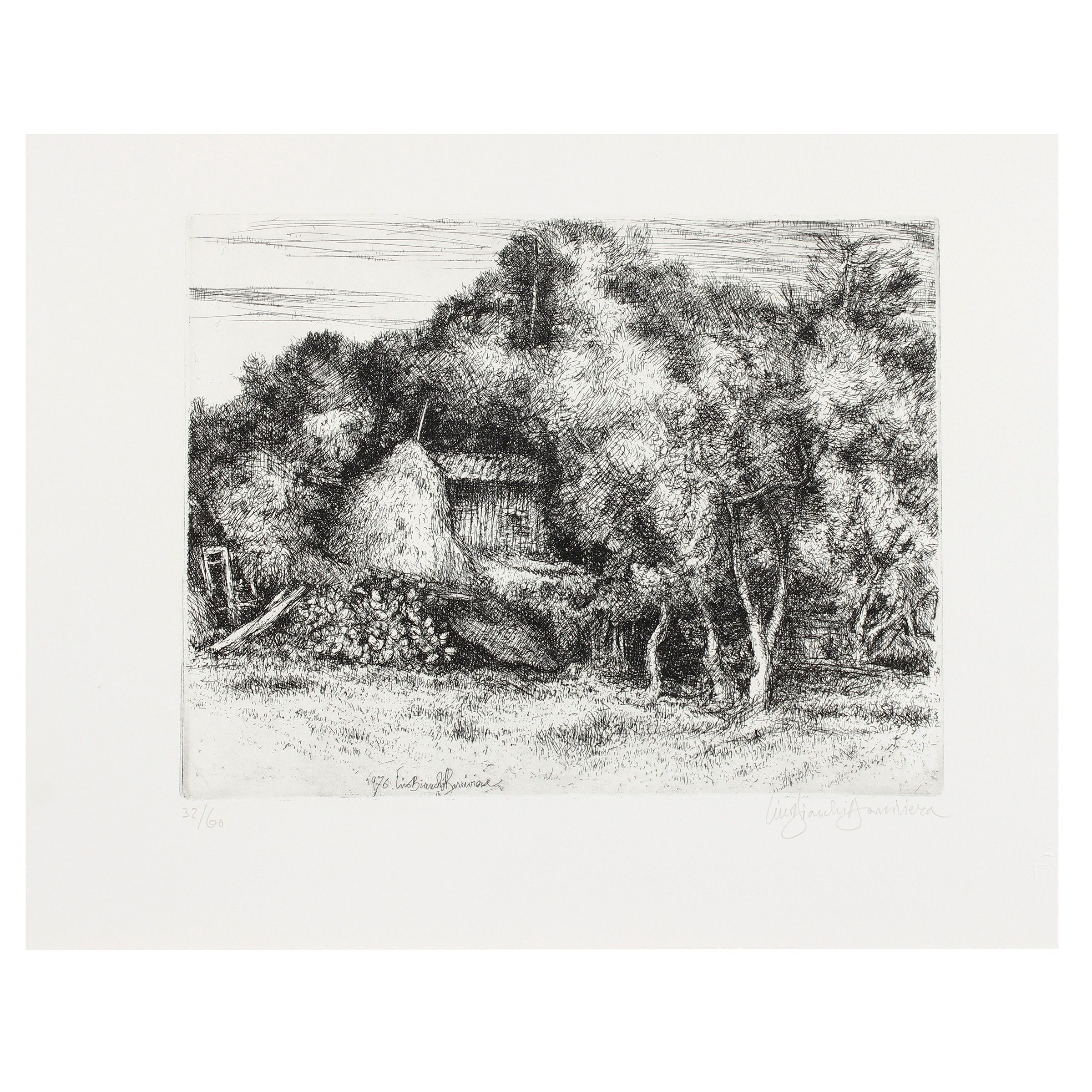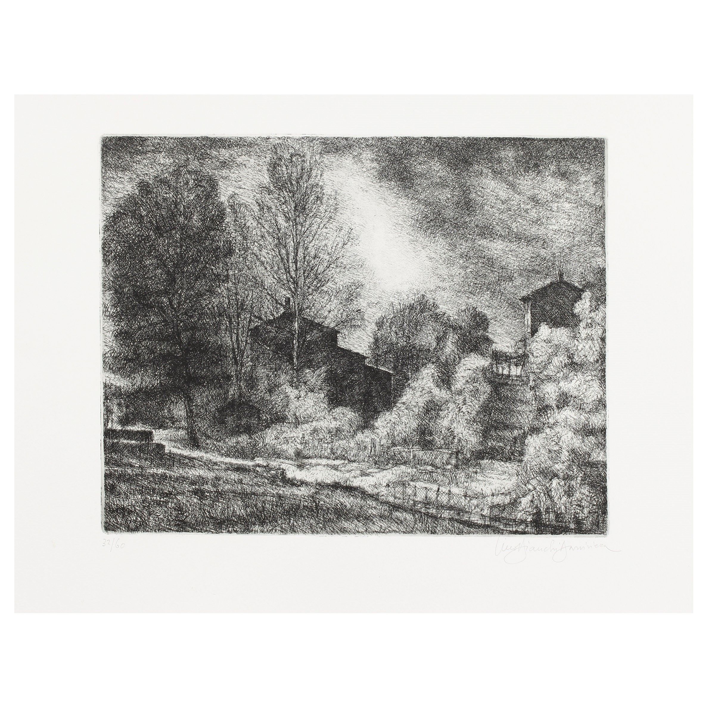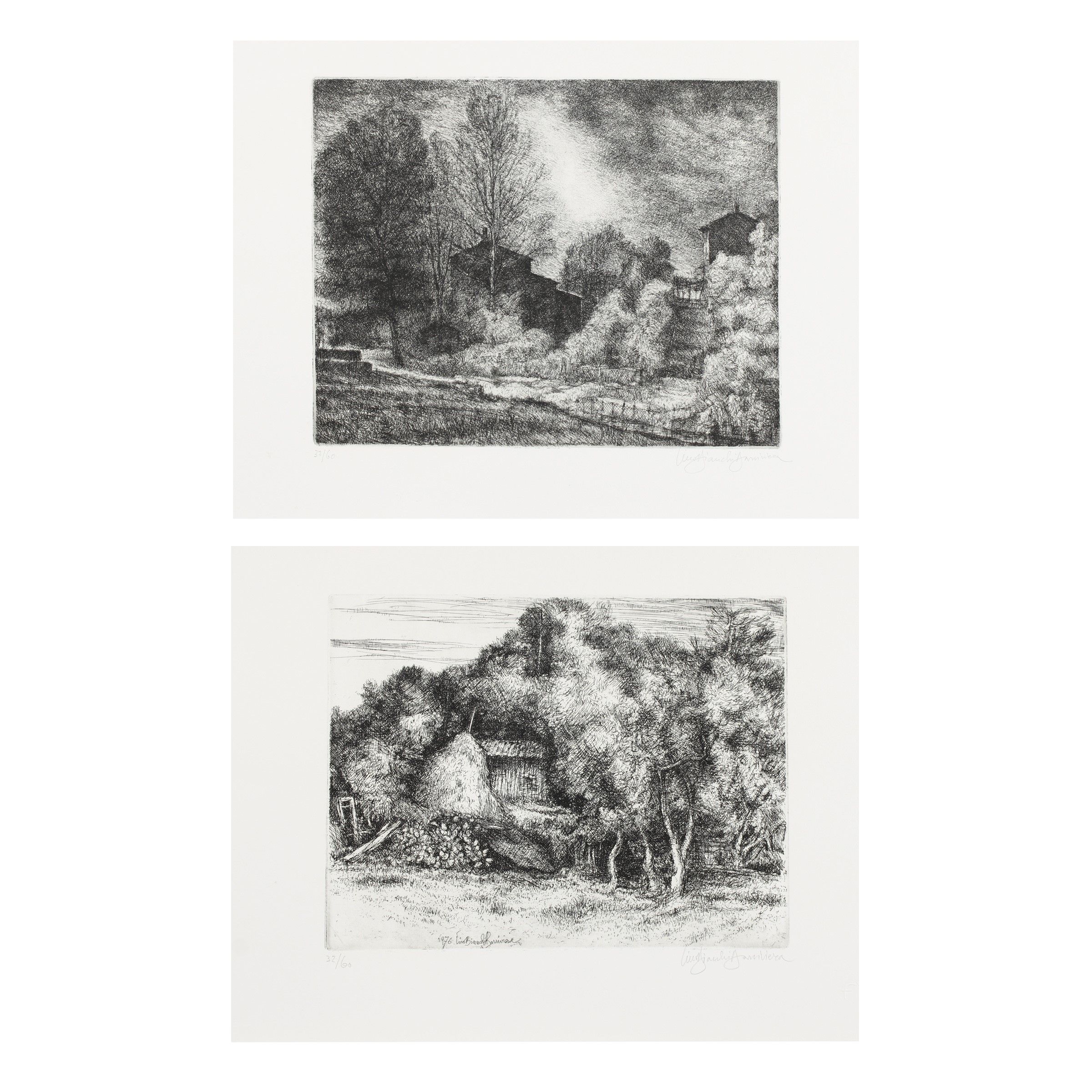 Montebelluna 1906 - Acilia 1985 cartella contenente 2 acqueforti, es. 32/60, firmate in basso a destra, presentate da Guido Giuffrè, Edizioni La Quercia, Roma, 1977