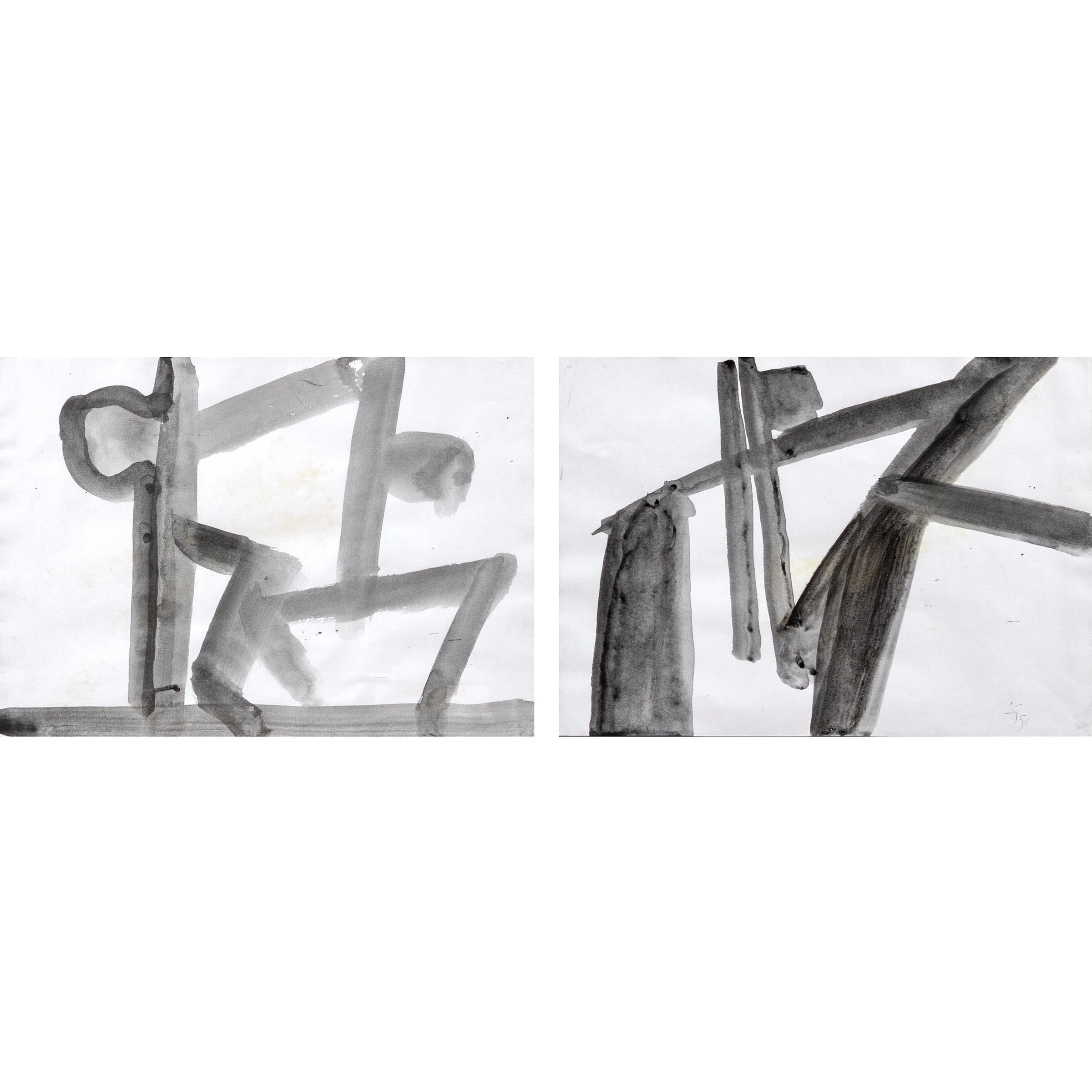 Milano 1914 - Roma 2002 Senza titolo, 1951, due tecniche miste su carta, firmate e datate in basso a destra e sul retro, entro cornice