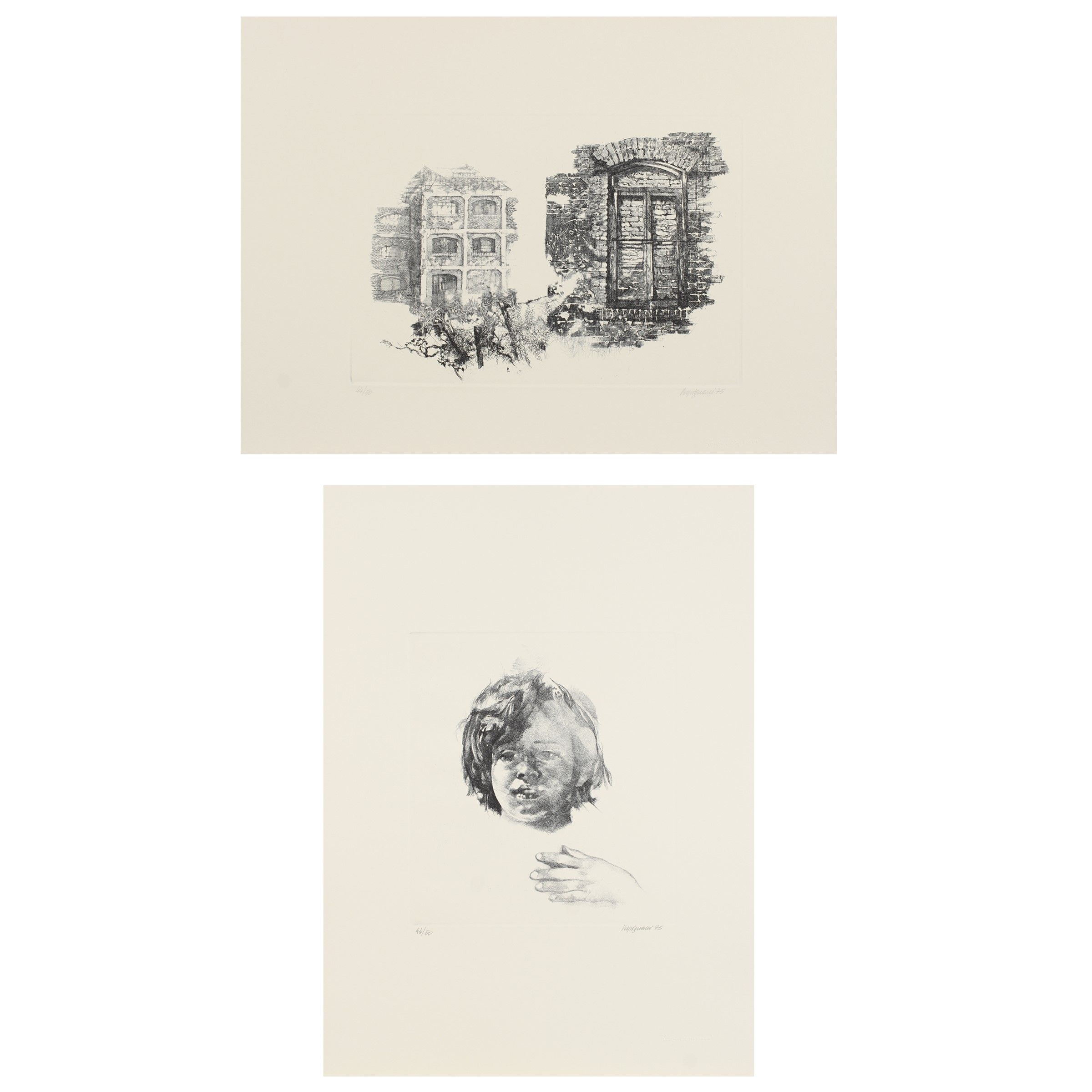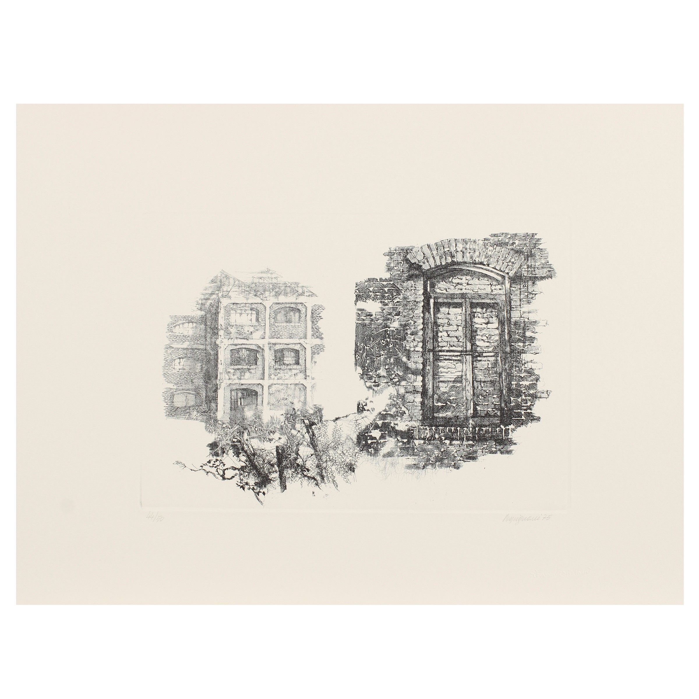 Roma 1924 - 2001 Alessandro - Vecchie fabbriche, 1975, cartella contente 2 acqueforti, es. 44/50, firmate e datate in basso a destra, presentata da Enrico Giuffrè, Edizioni La Quercia, Roma