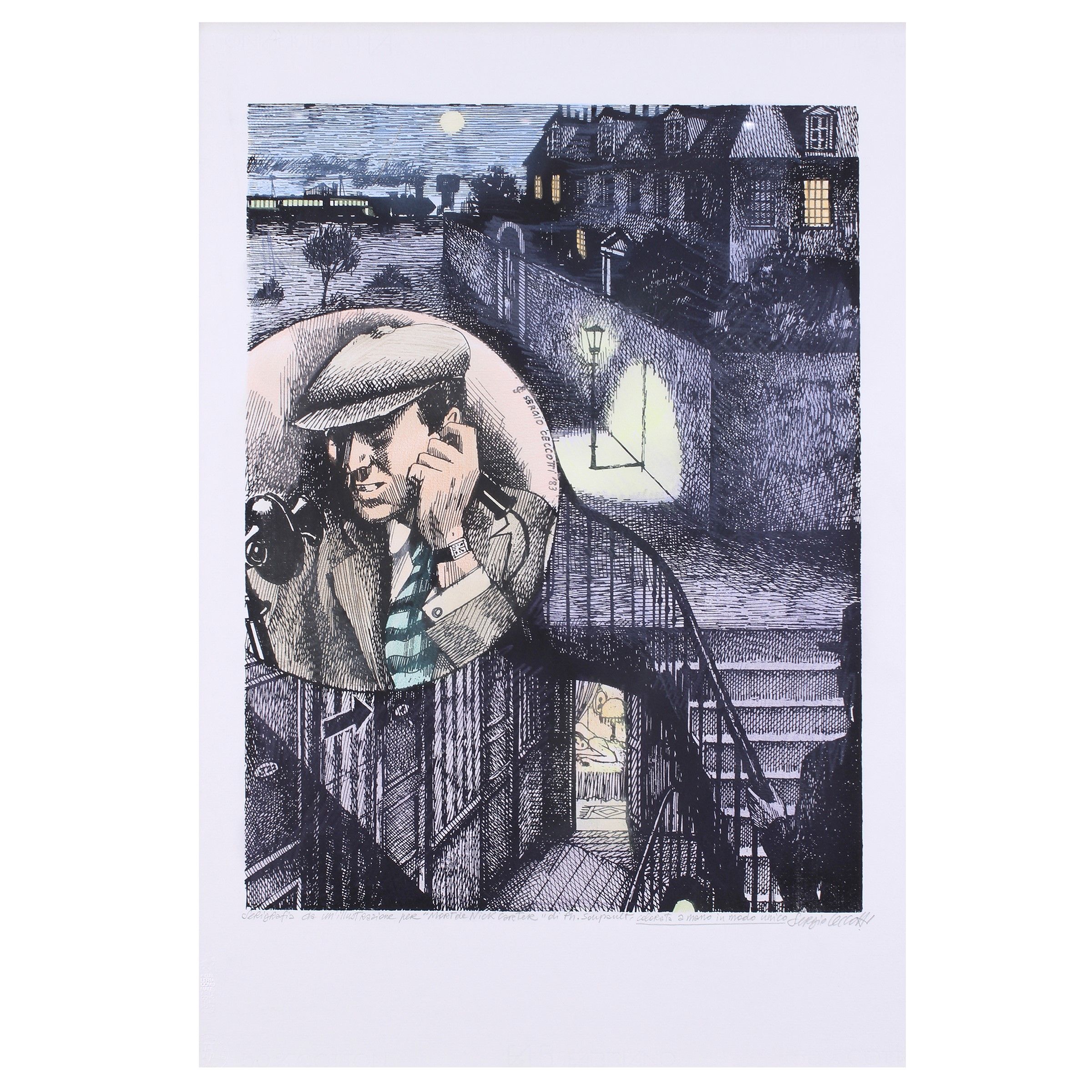 Roma 1935 Da un'illustrazione per Mort de Nick Carter, 1983, serigrafia colorata a mano, firmata in basso a destra, entro cornice