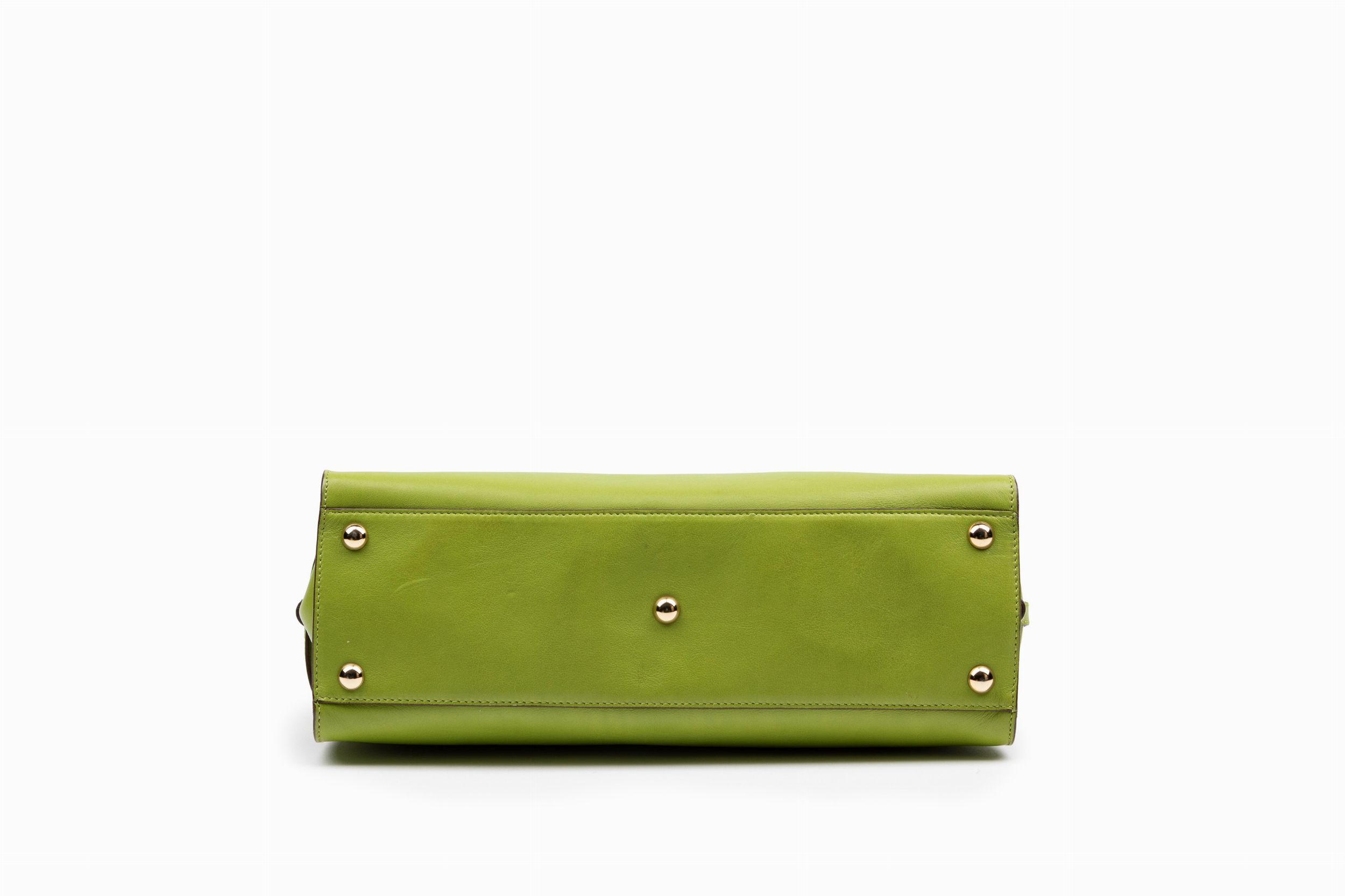 in pelle color verde mela, dettagli in metallo dorato, cm 32 (difetti)