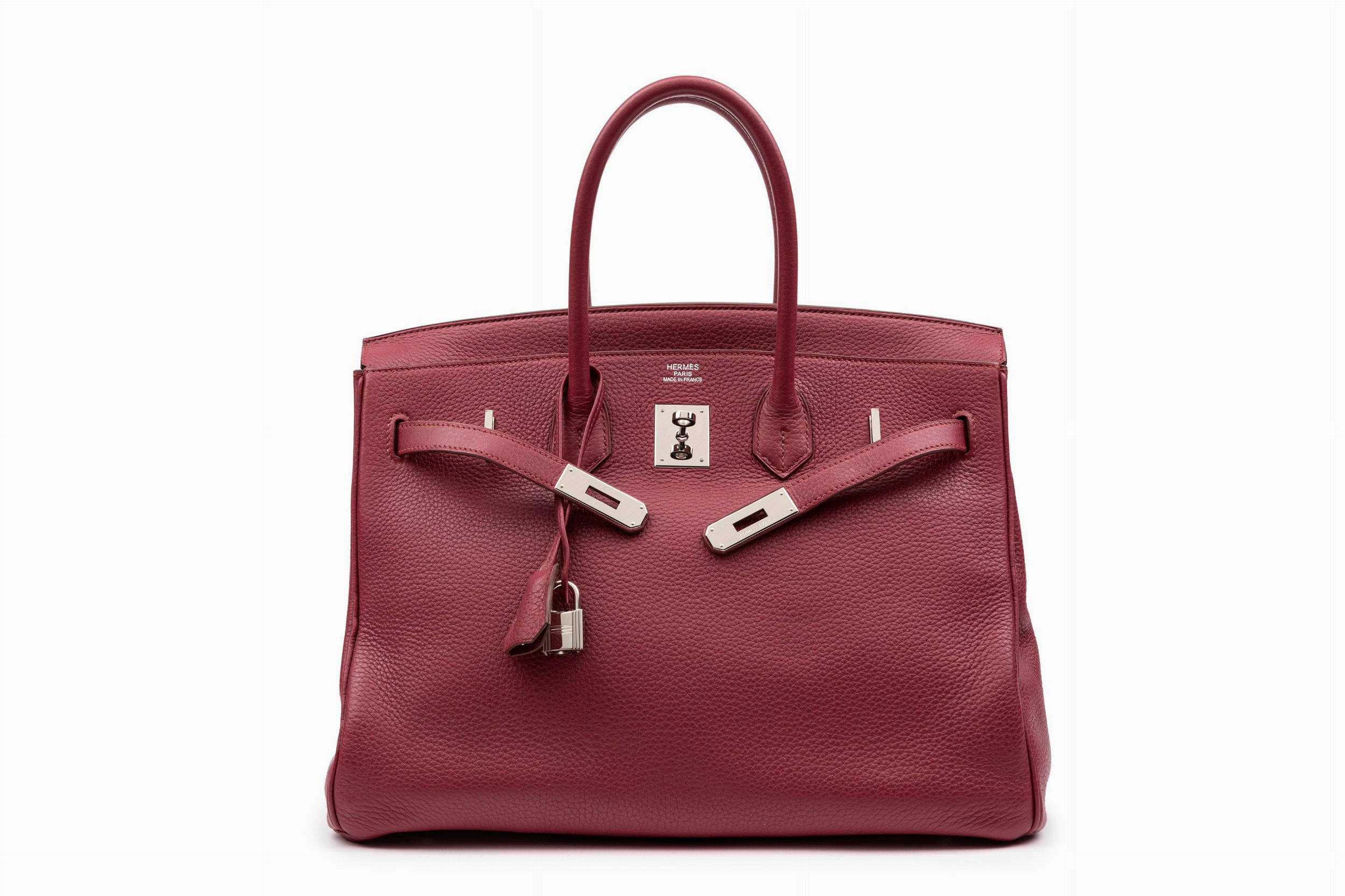 2010 in pelle taurillon clemence color rubino, dettagli in palladio (lievissimi difetti)