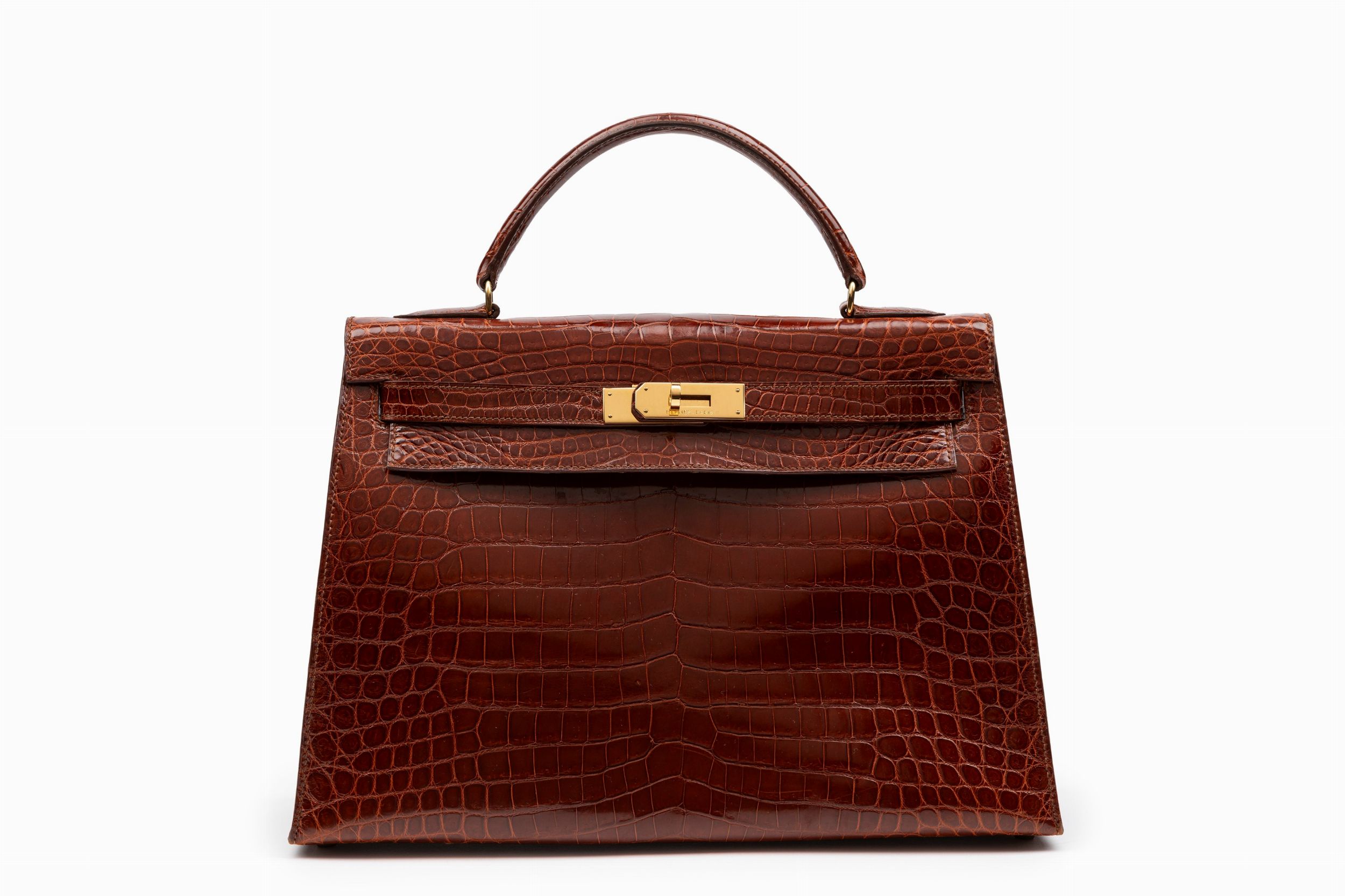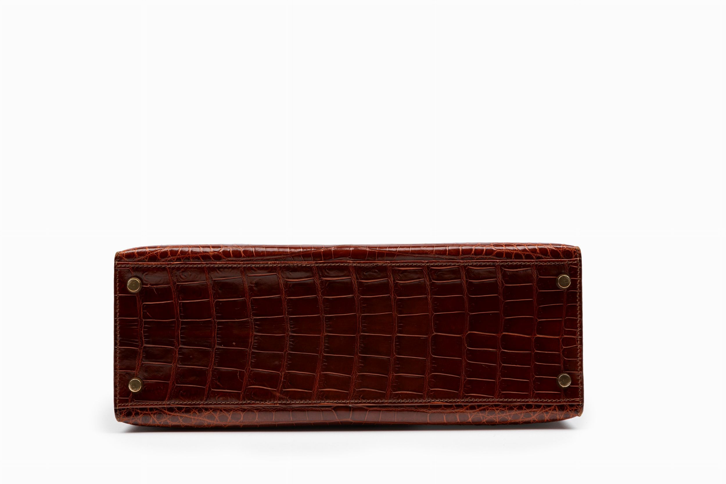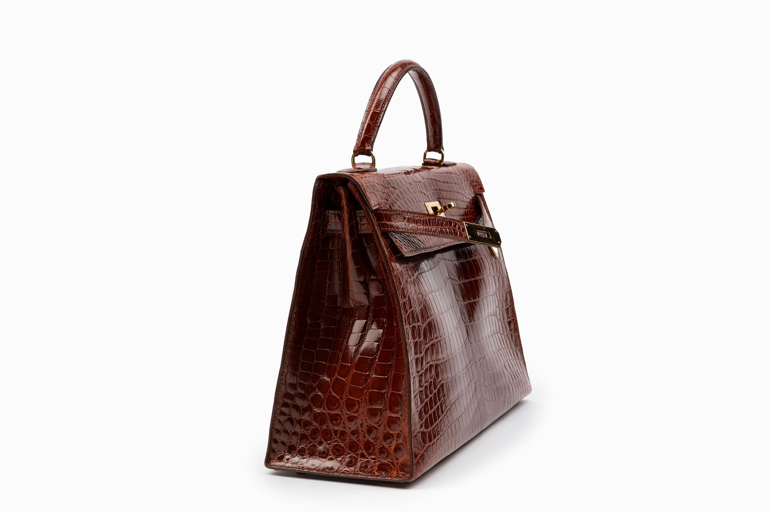 in coccodrillo Niloticus color cognac, dettagli in metallo dorato, filo della clochette scucito (difetti)