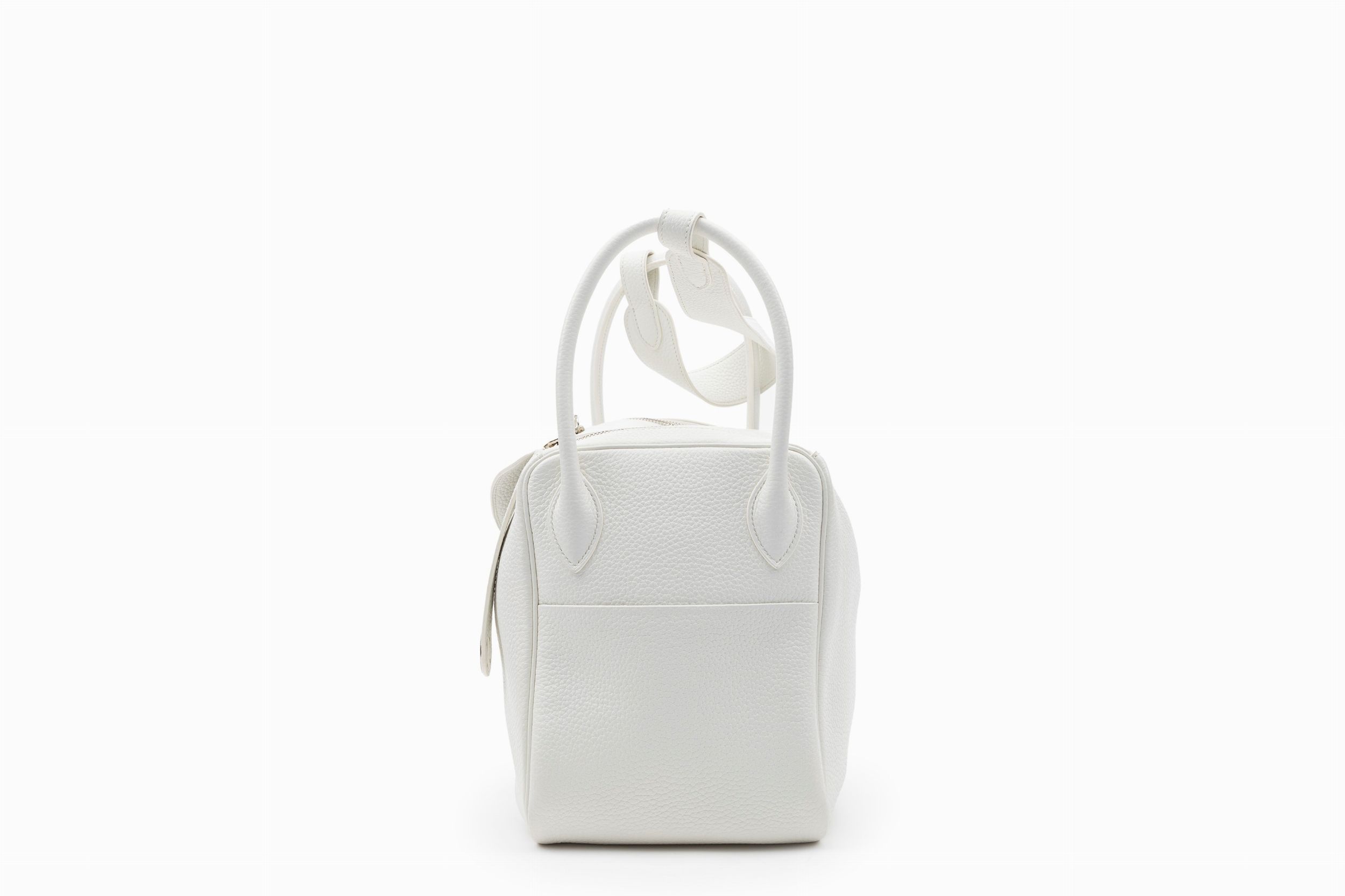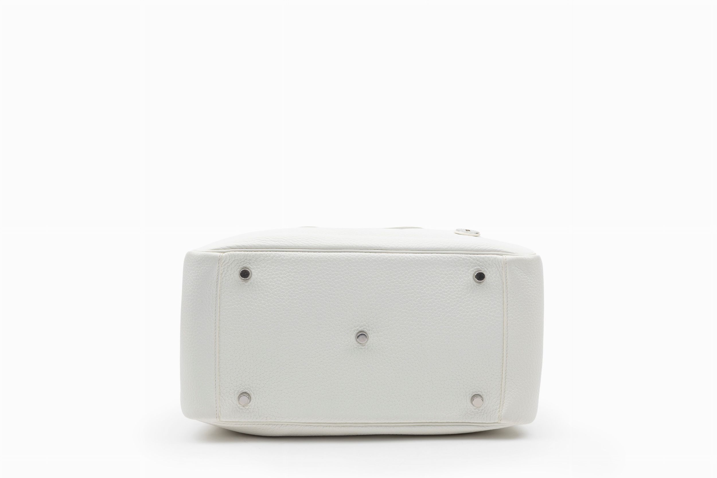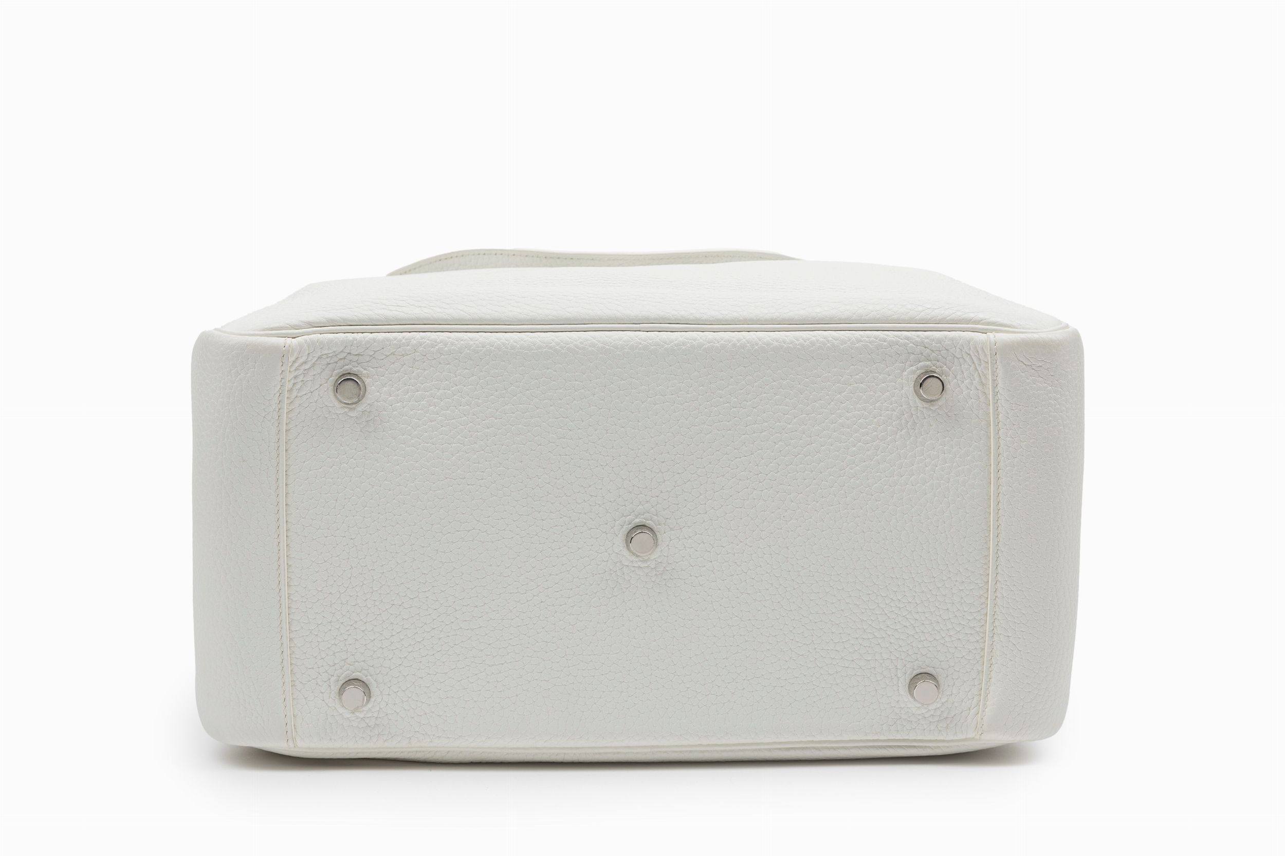 2016 in pelle togo color bianco, dettagli in palladio, cm 35, con sacchetto