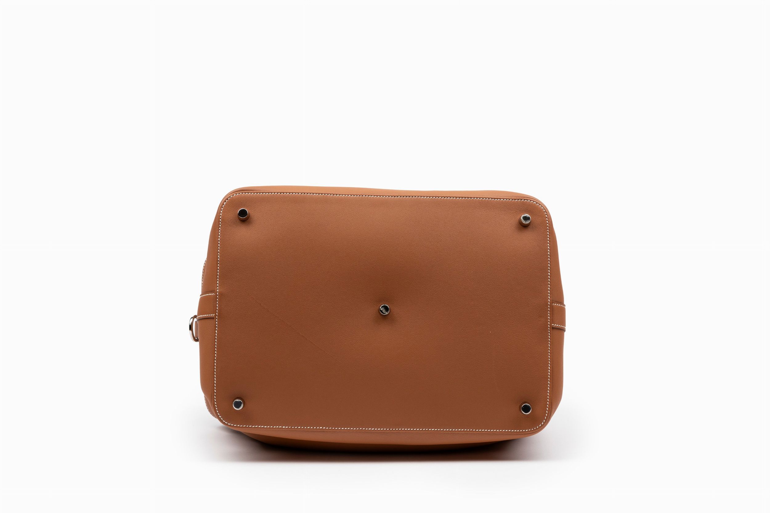 2014 in pelle swift color caramello, doppi manici, tracolla staccabile, dettagli in palladio, cm 32, con sacchetto e scatola (lievi difetti)
