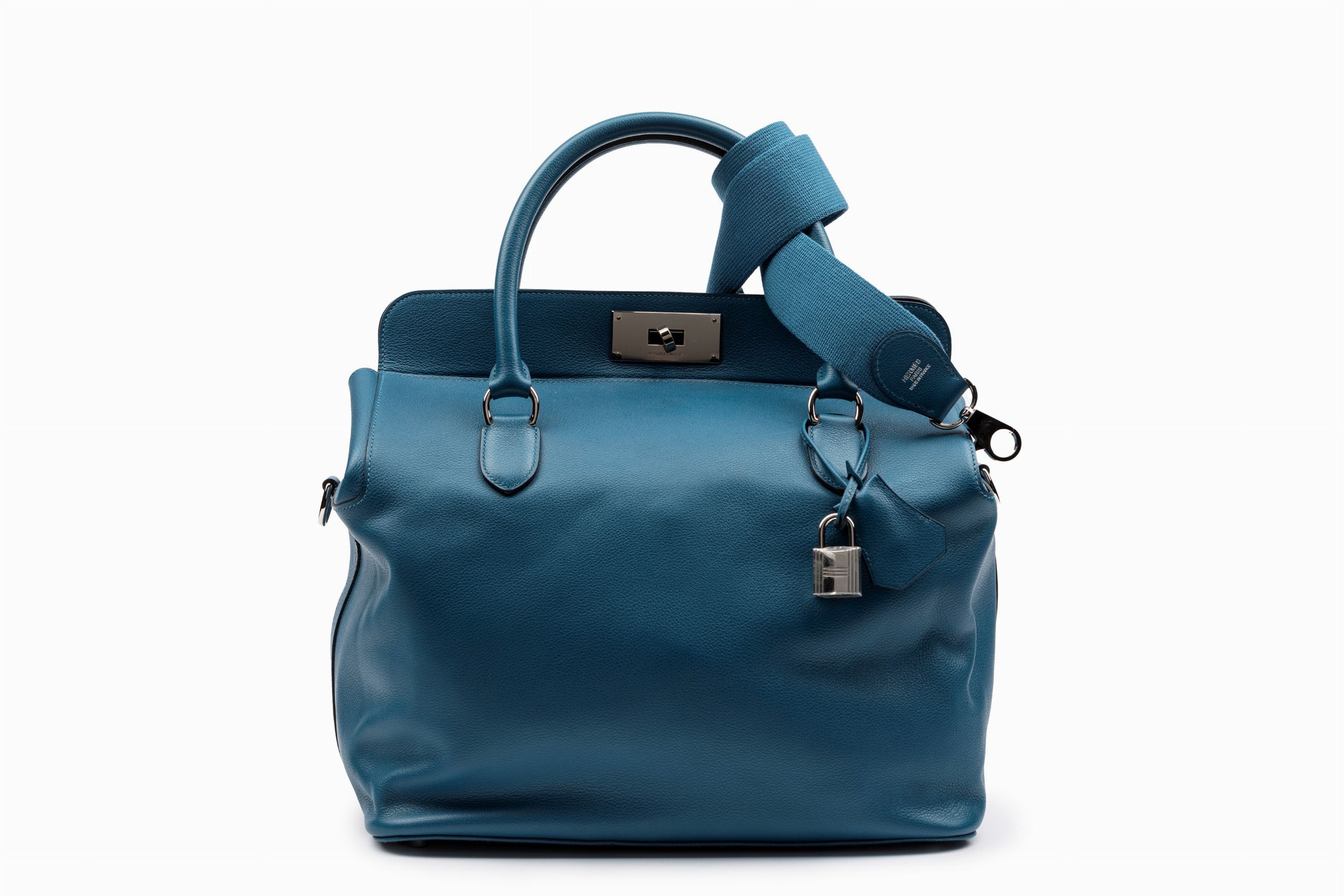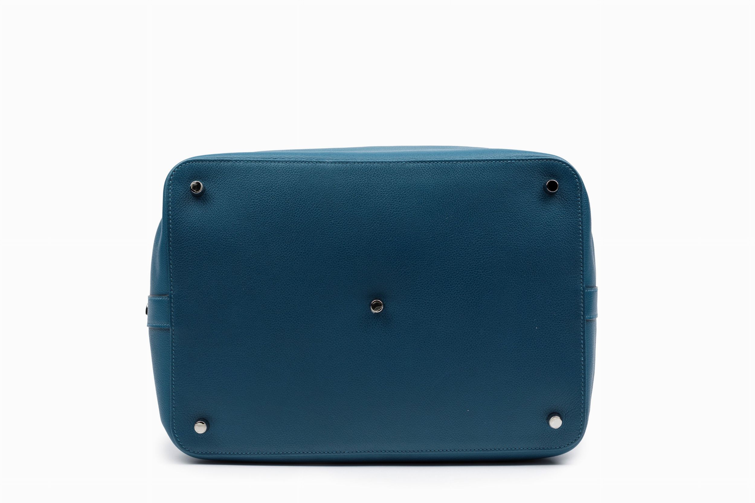 2014 in pelle swift color blu ottanio, doppi manici, tracolla staccabile, dettagli in palladio, cm 33, con sacchetto e scatola (nuova e mai usata)