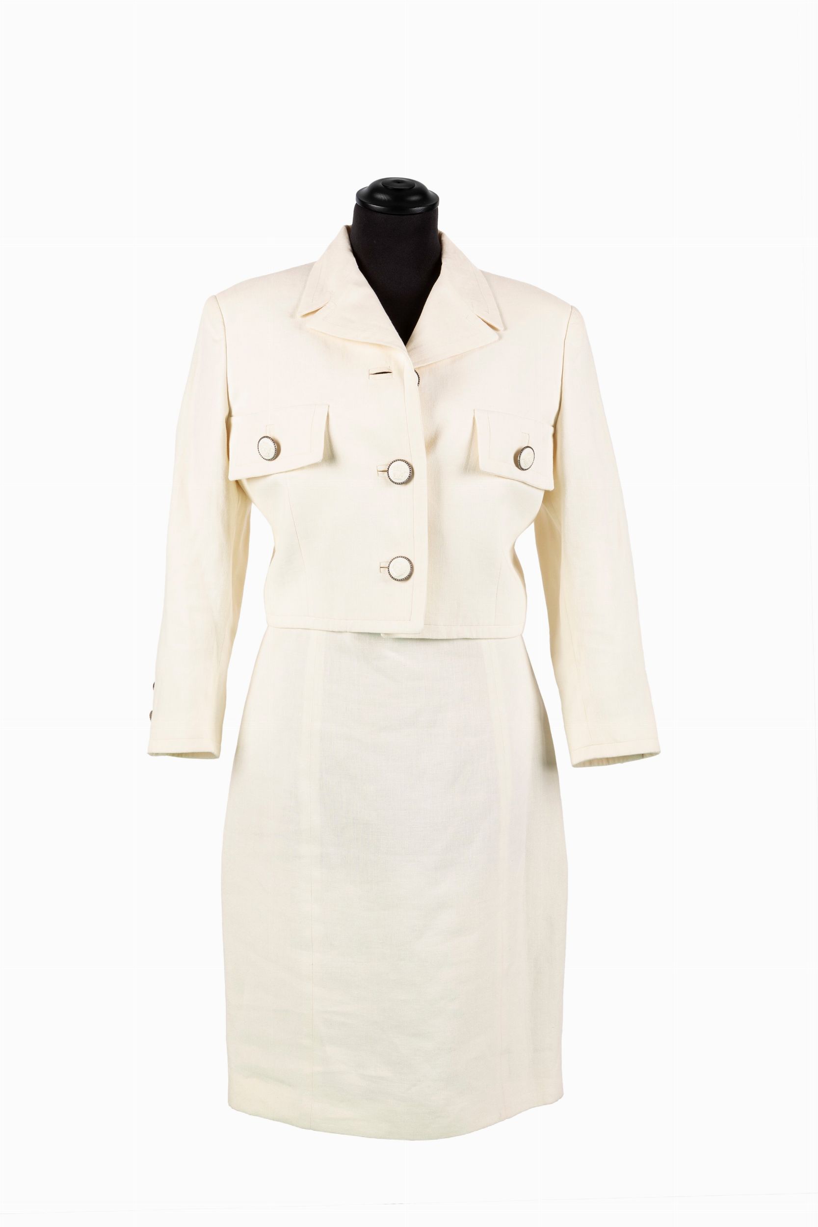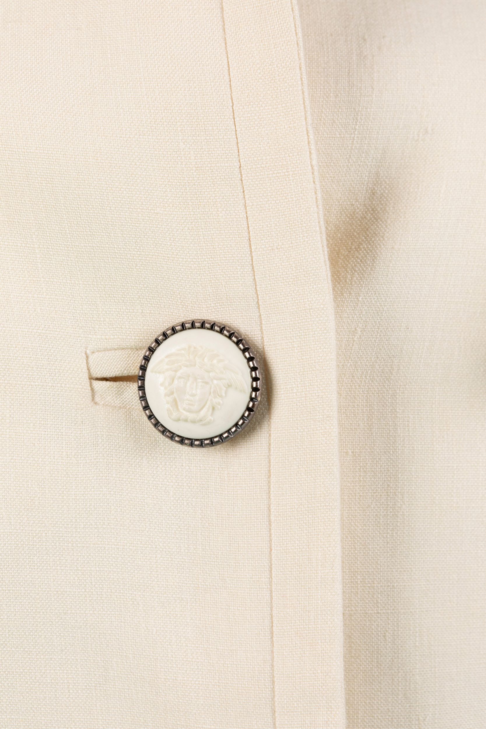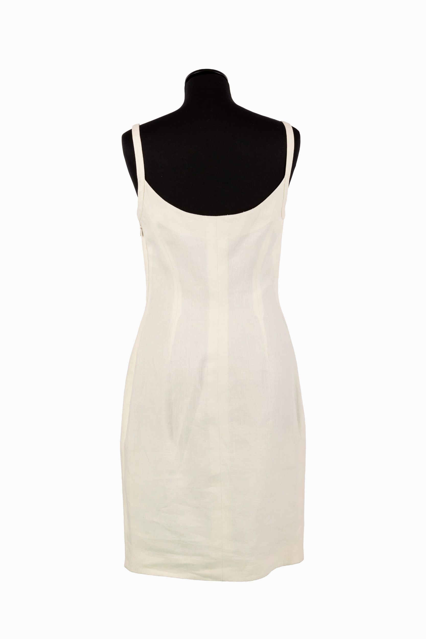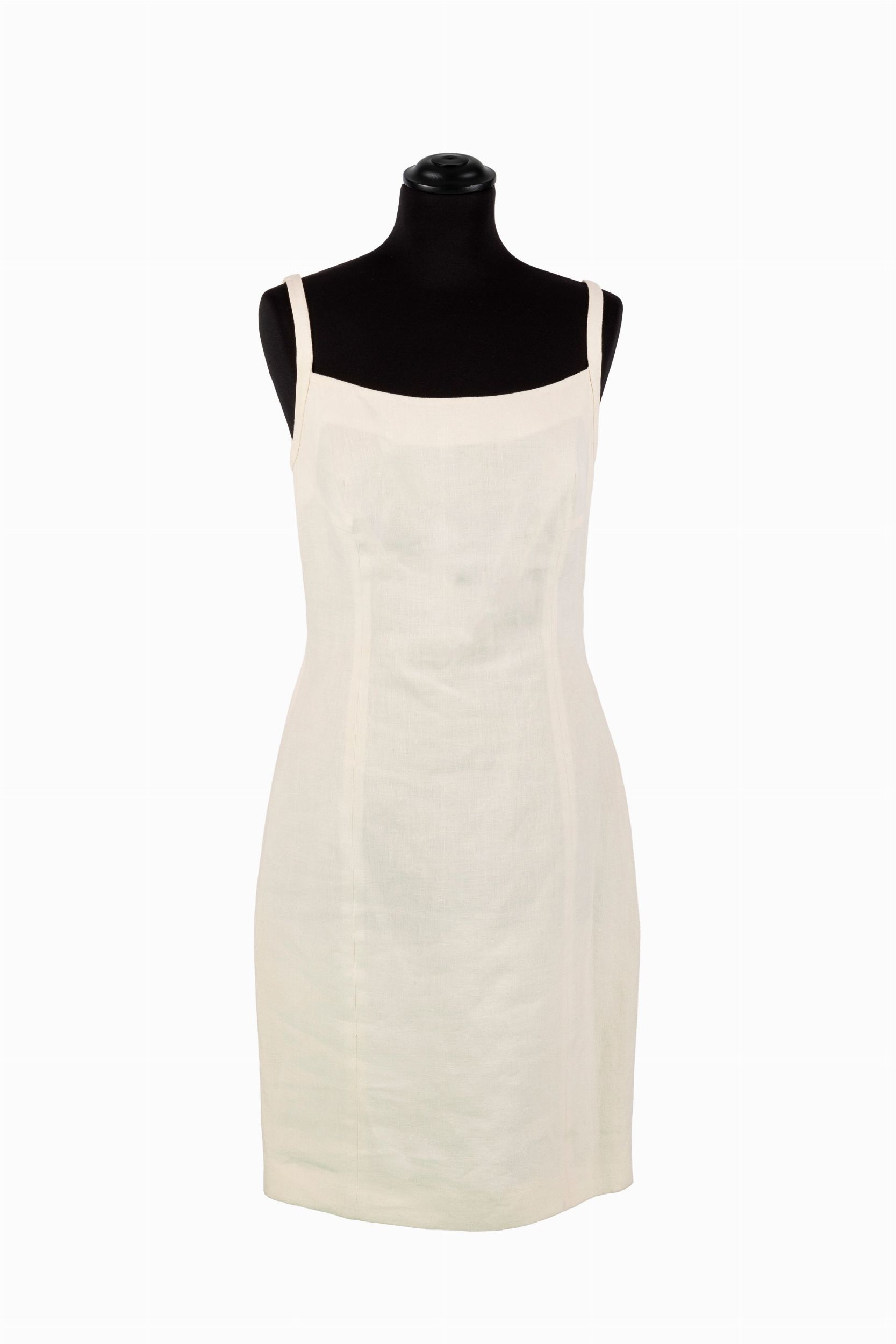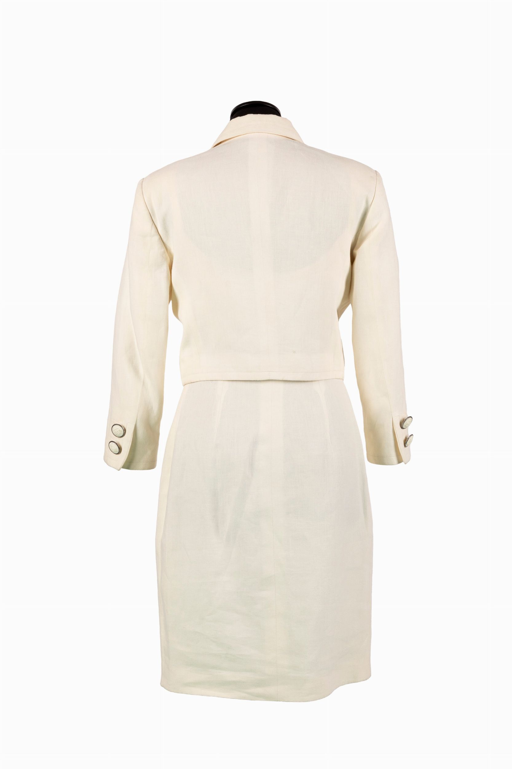 da un abito a canotta in lino color crema, e da giacchino, bottoni logati, taglia 40 italiana (difetti)
