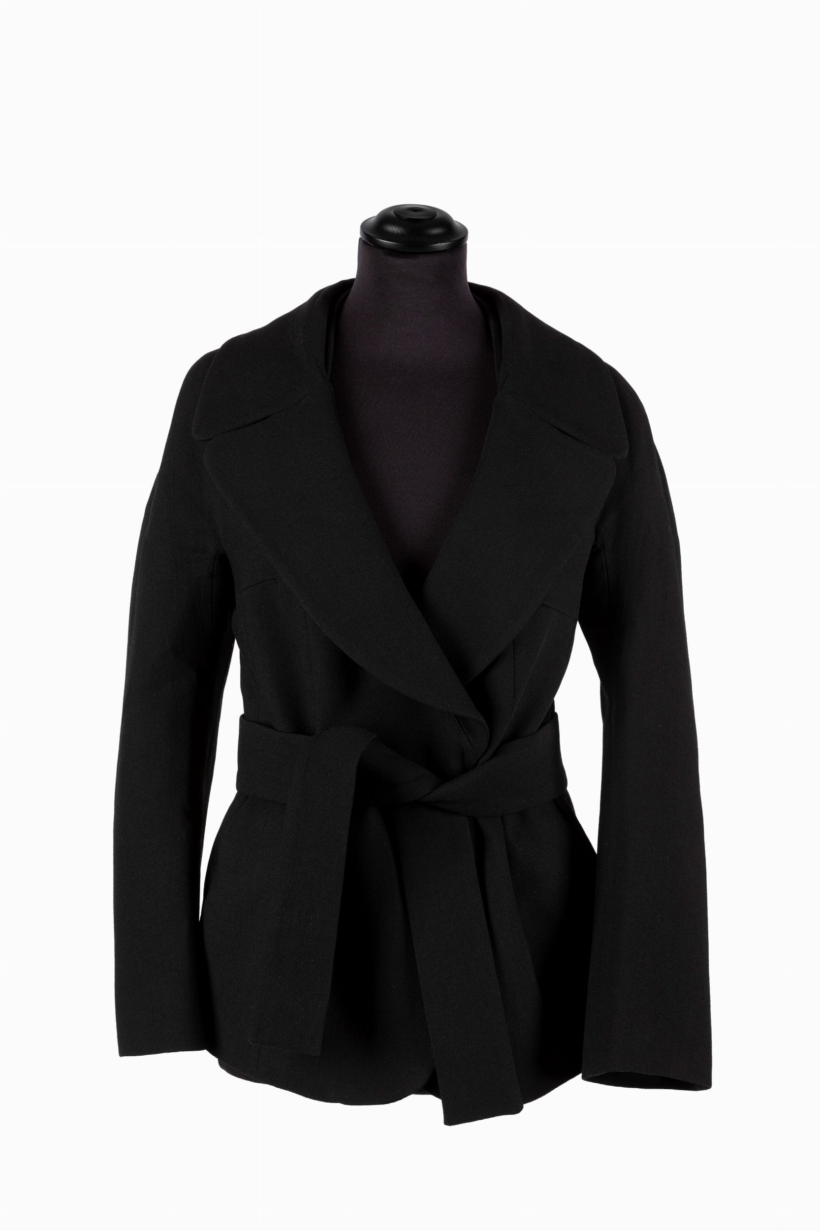 in lana color nero, manica lunga, fodera logata, con cintura, taglia 42