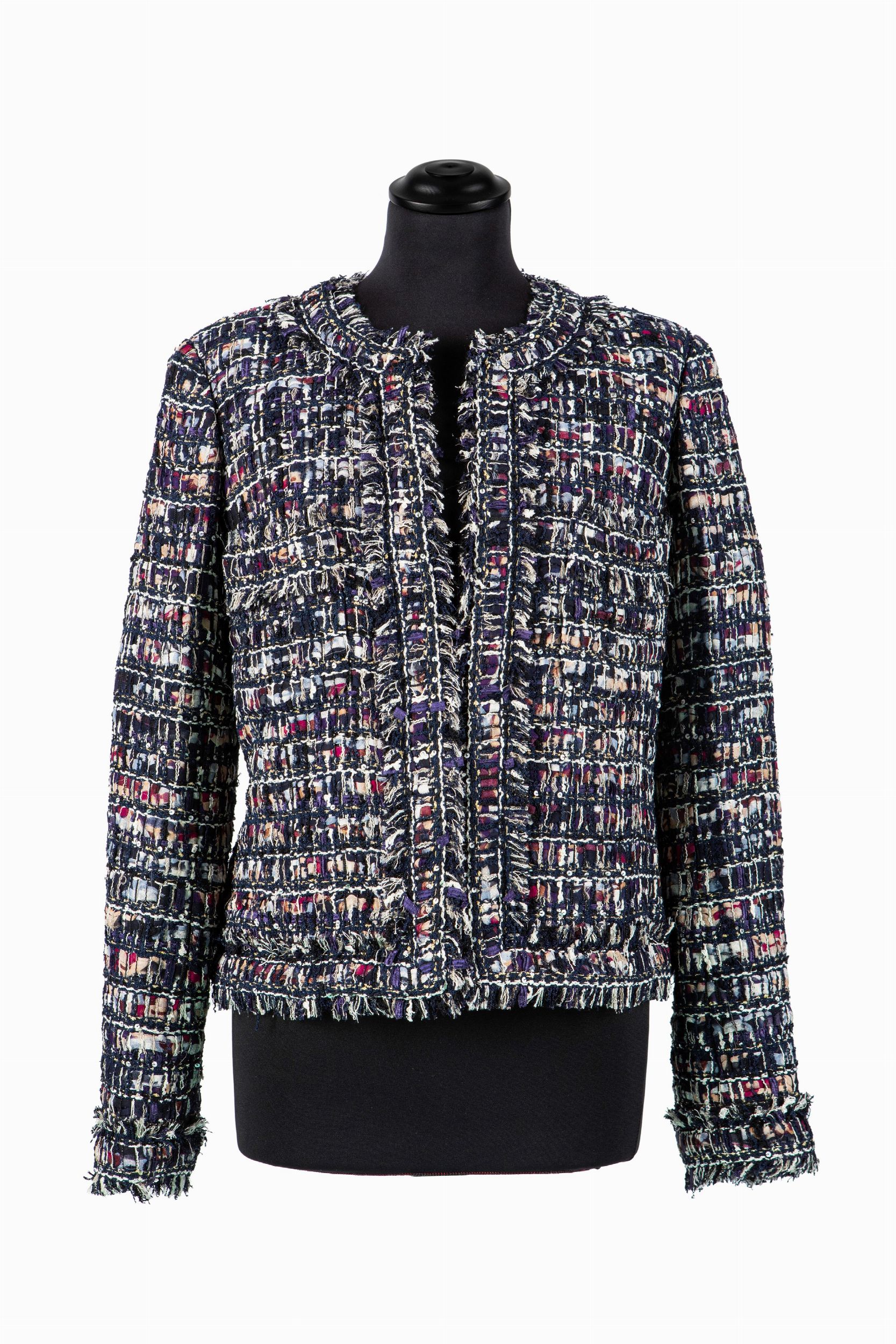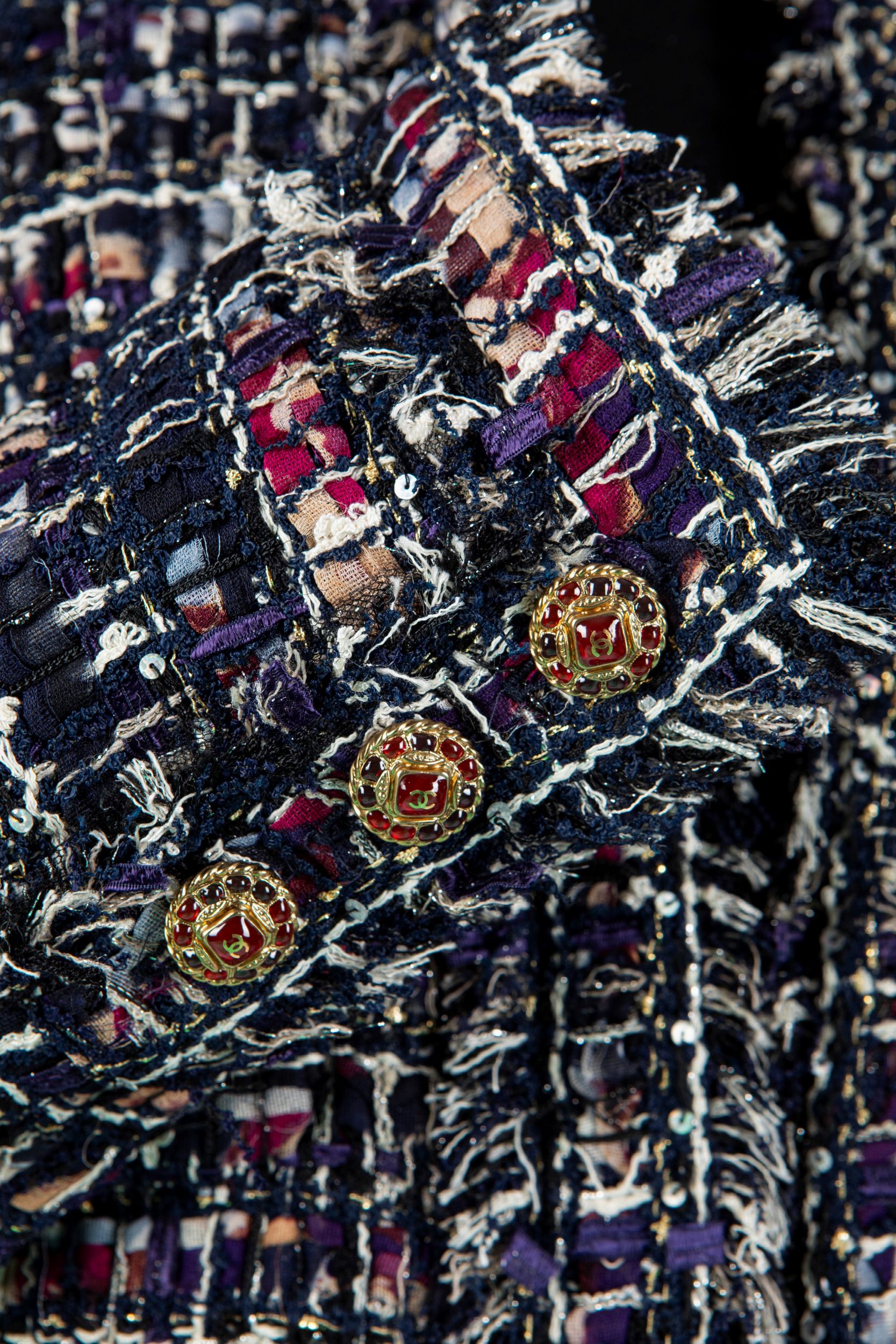a manica lunga in misto seta e cotone intrecciato multicolor, bottoni gioiello logati, taglia 42 francese