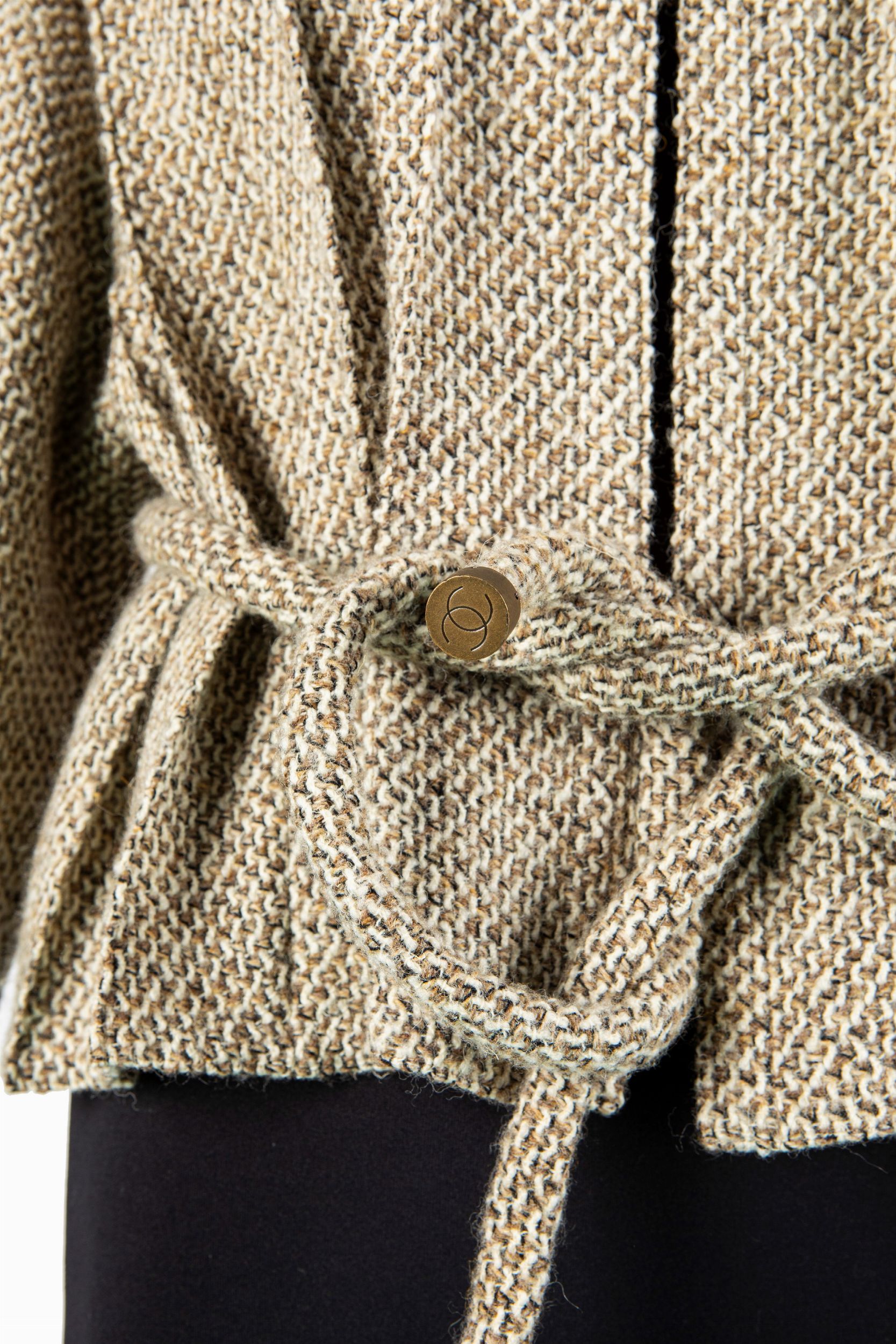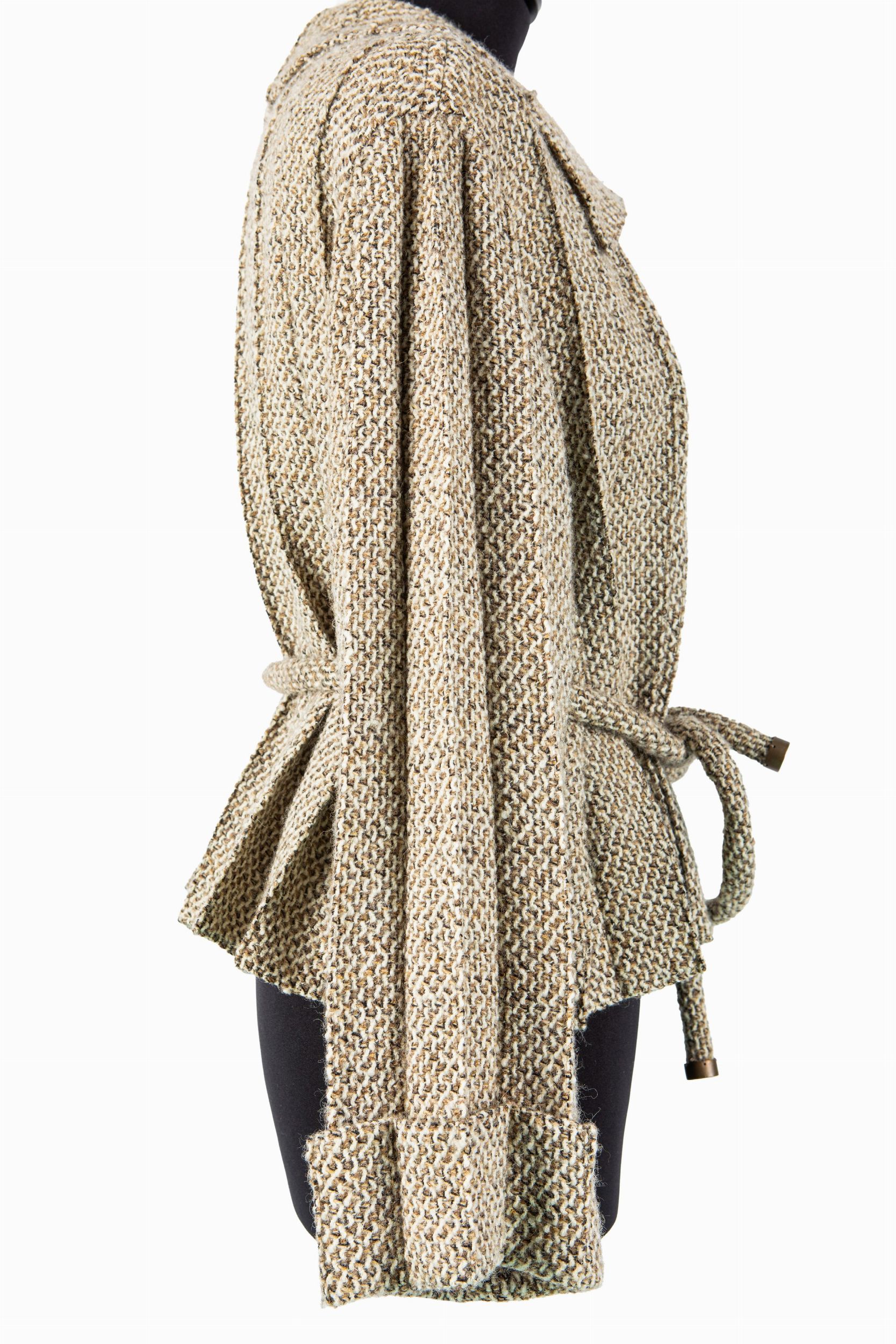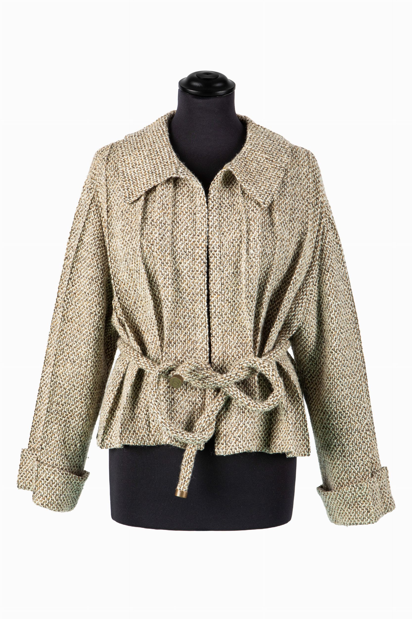 a manica lunga plissettata in lana bicolore, con cintura a tubolare, taglia 38 francese (lievissimi difetti)