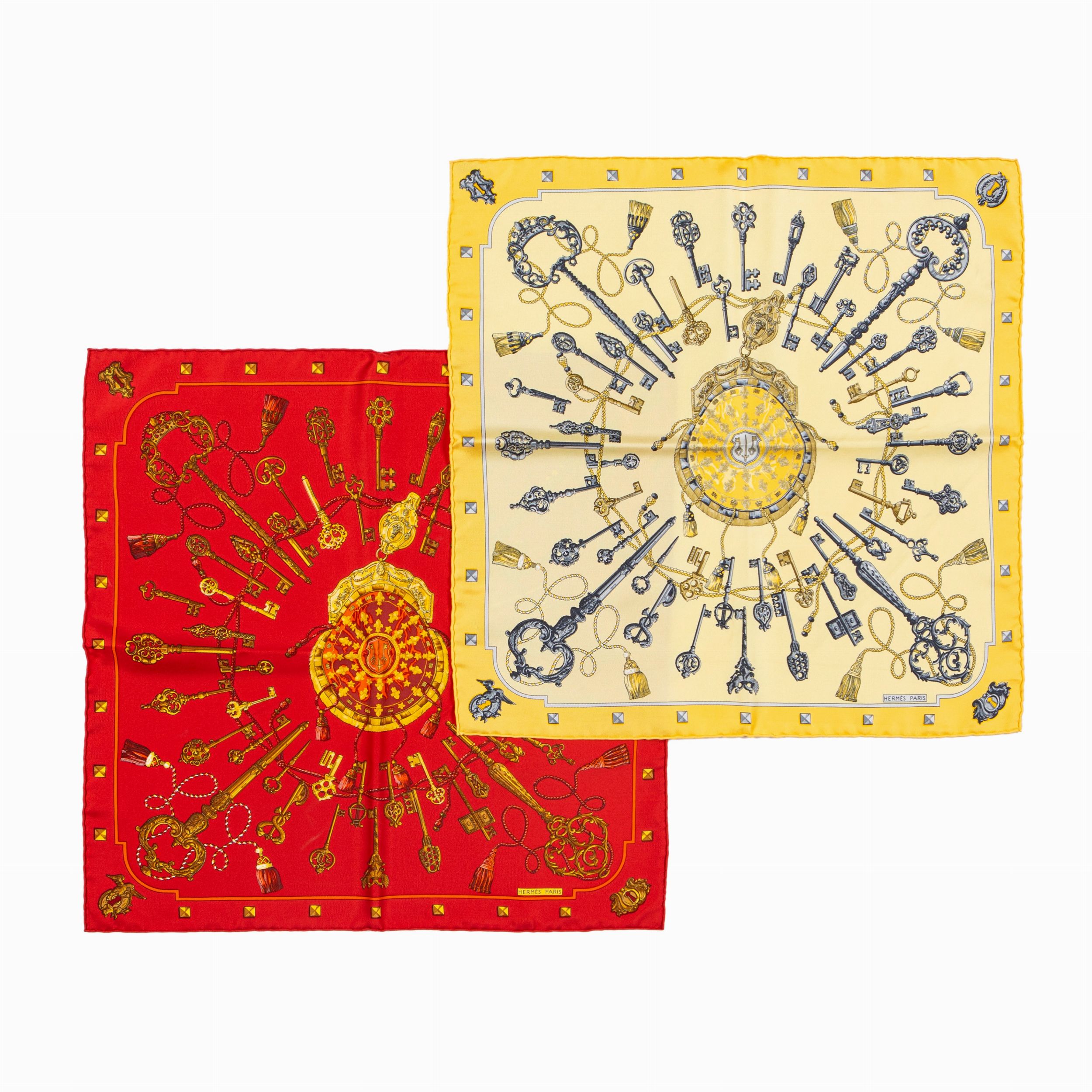 1980 in seta su fondo color rosso e giallo pallido, cm 42 x 42, Caty Latham, con scatola