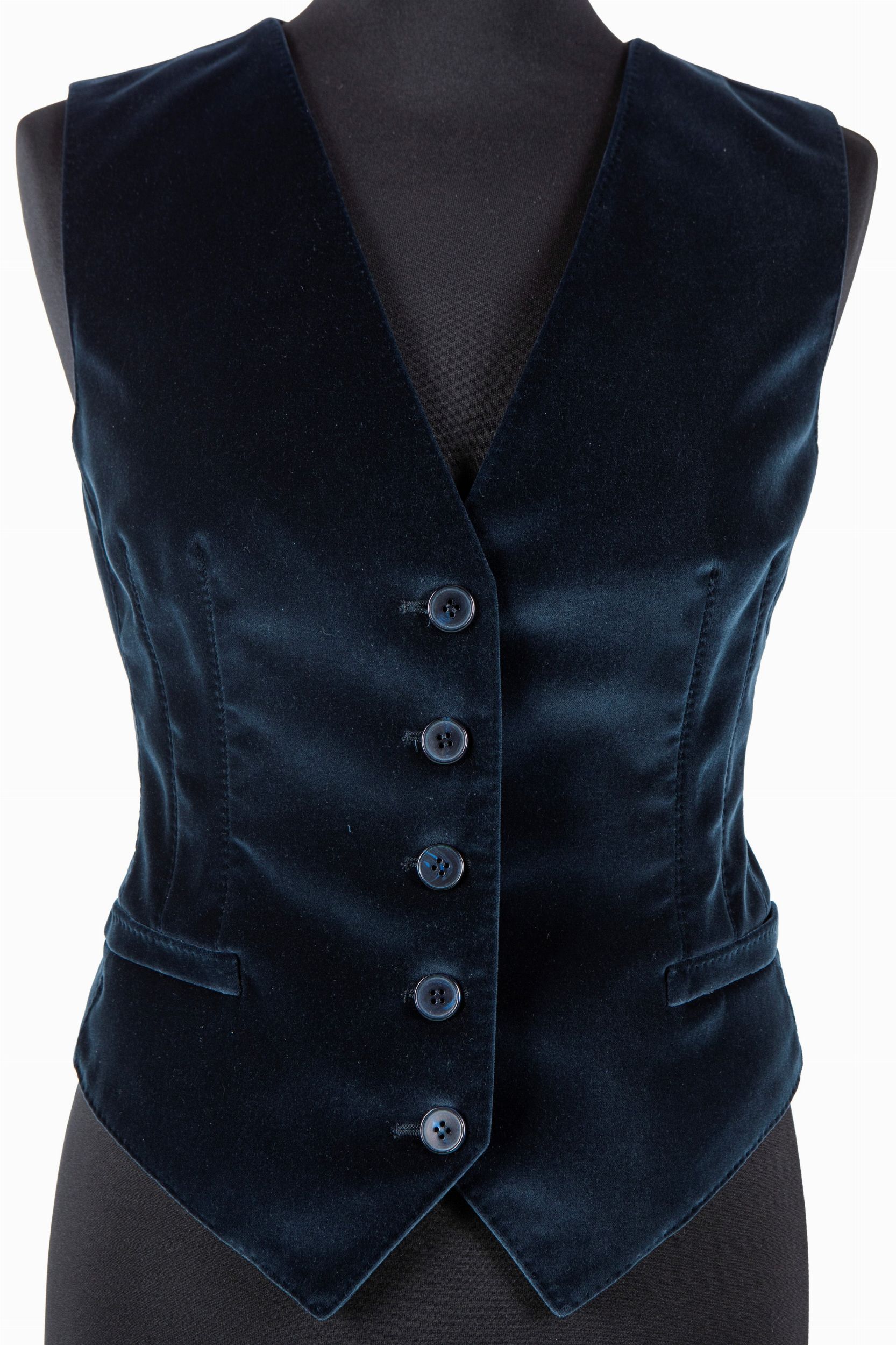 in velluto di cotone color blu, fodera in seta, taglia 40 italiana, con custodia (nuovo e mai usato)