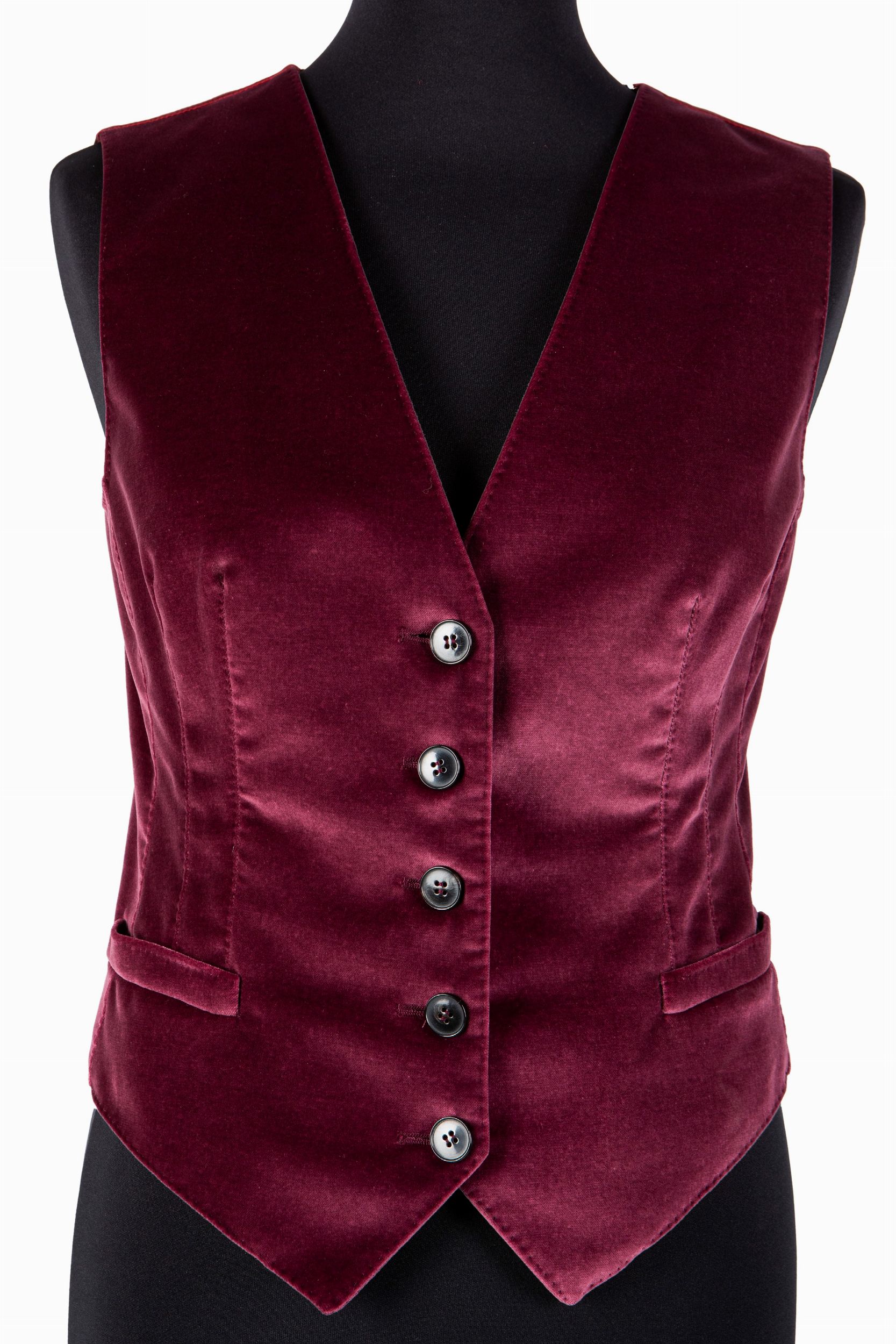 in velluto di cotone color bordeaux, fodera in seta, taglia 40 italiana, con custodia (nuovo e mai usato)