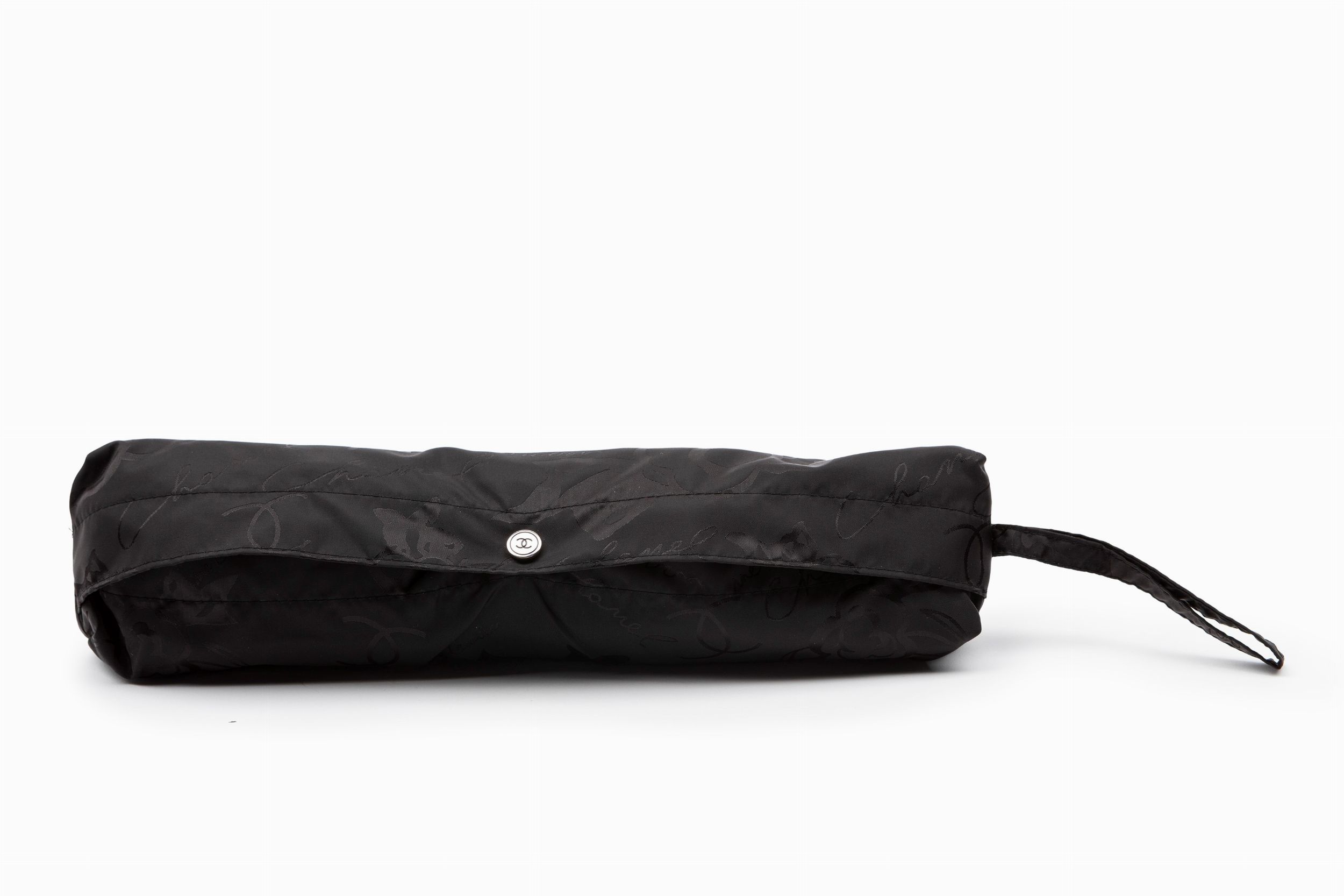 in tessuto impermeabile color nero logato Chanel Rue Cambon Camelia, forma ottagonale, con custodia (nuovo e mai usato)