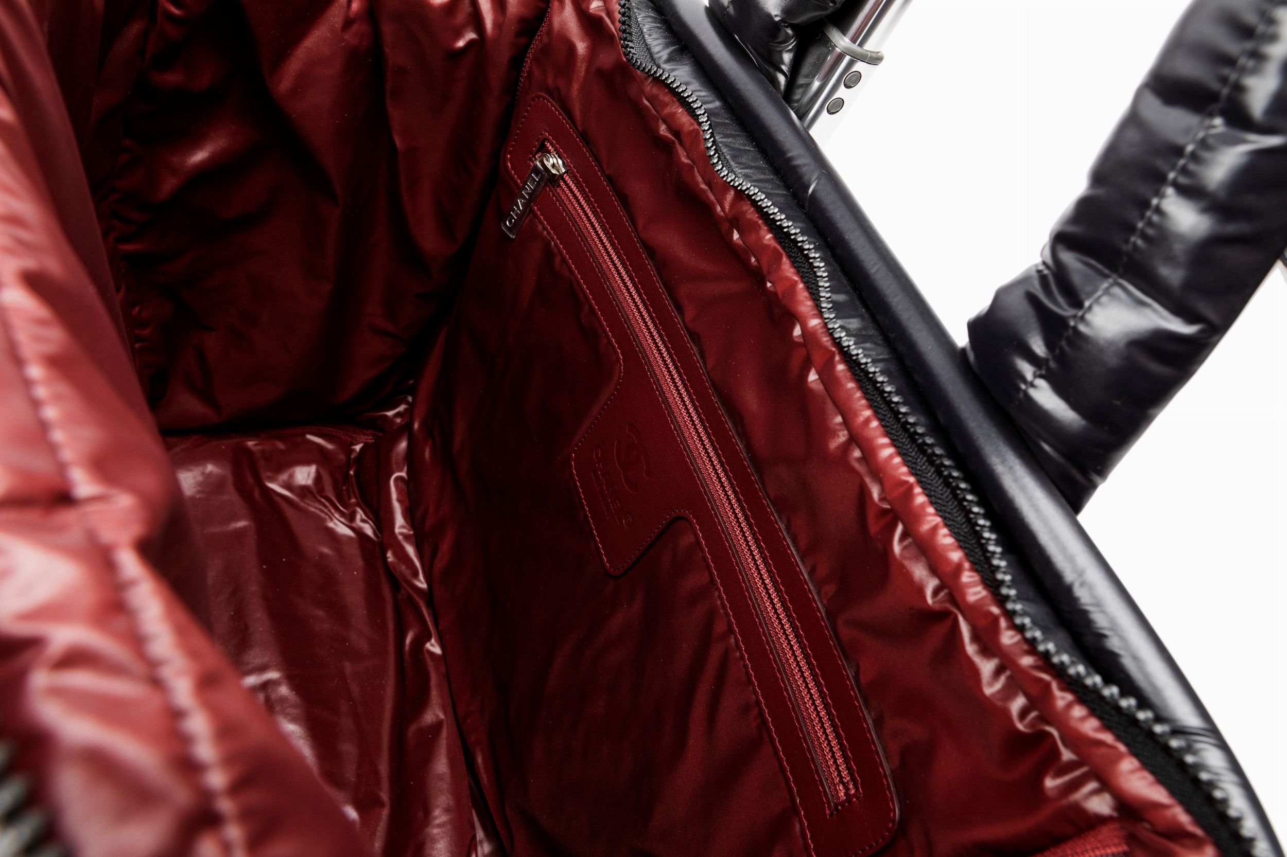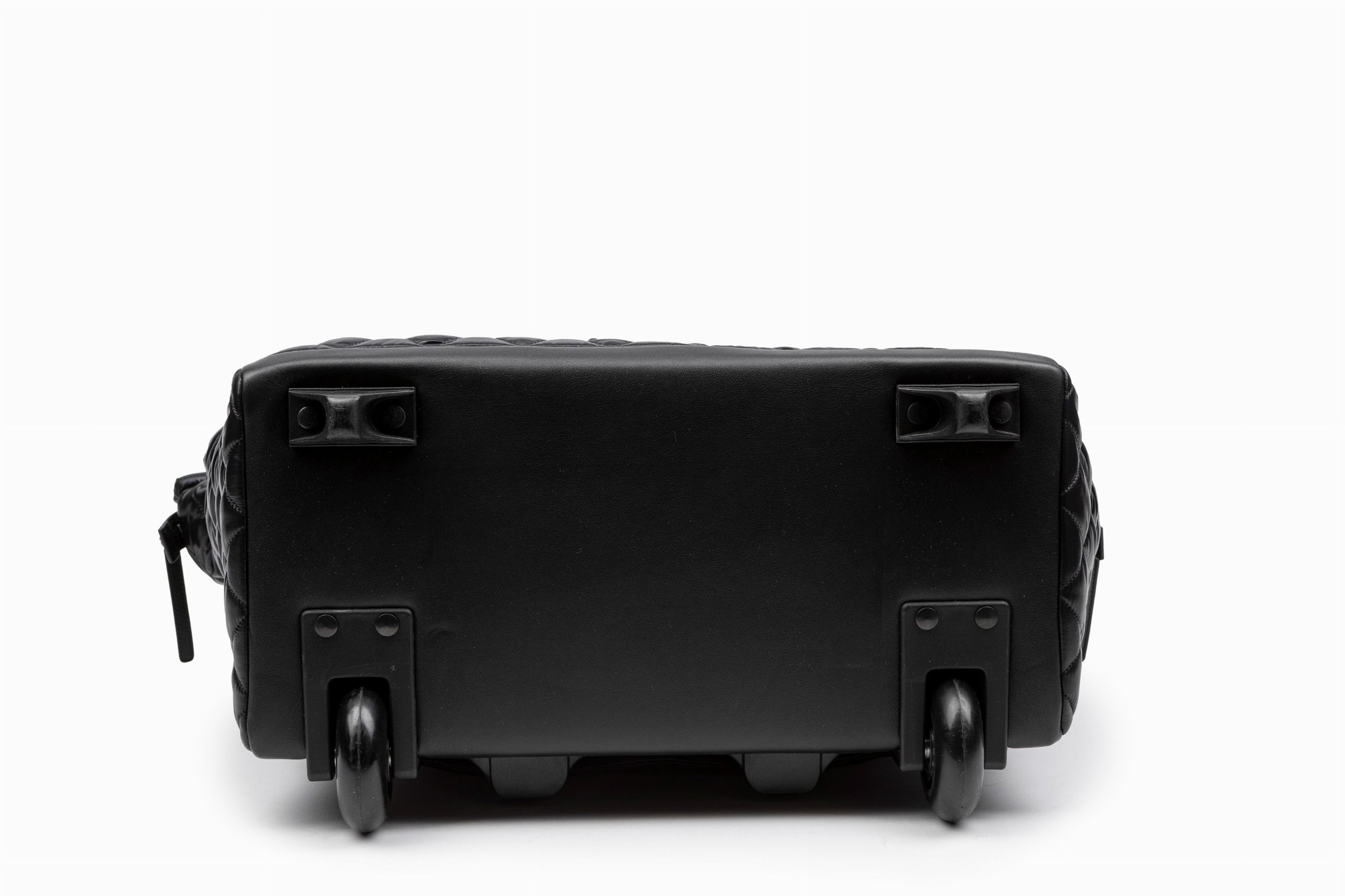 2014 composto da un trolley in tessuto tecnico trapuntato color nero, interno color bordeaux, e da una borsa in pendant con doppi manici, base cm 40 (nuovi e mai usati)
