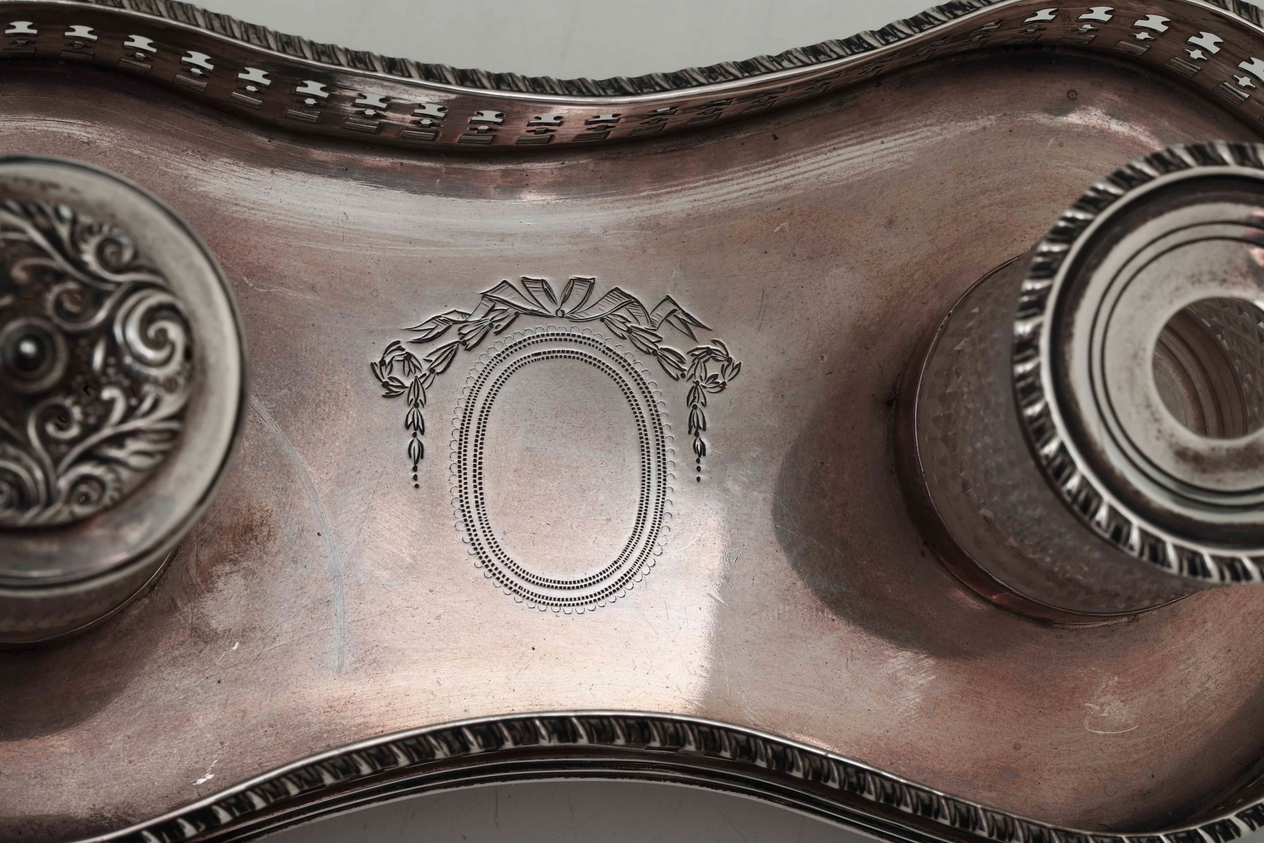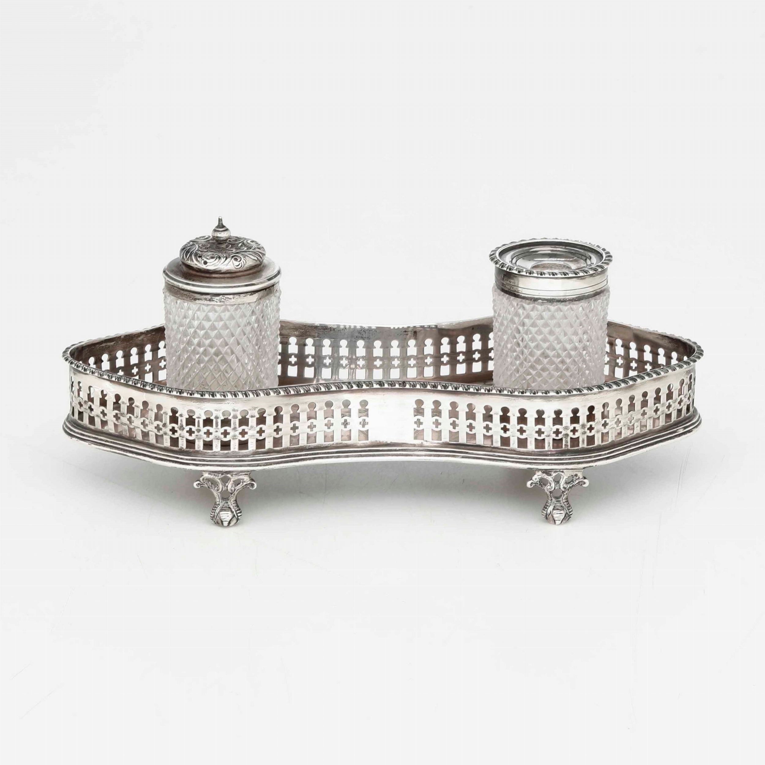 Calamaio. Argento fuso, traforato e vetro molato. Londra 1892. Argentiere Rupert [..]