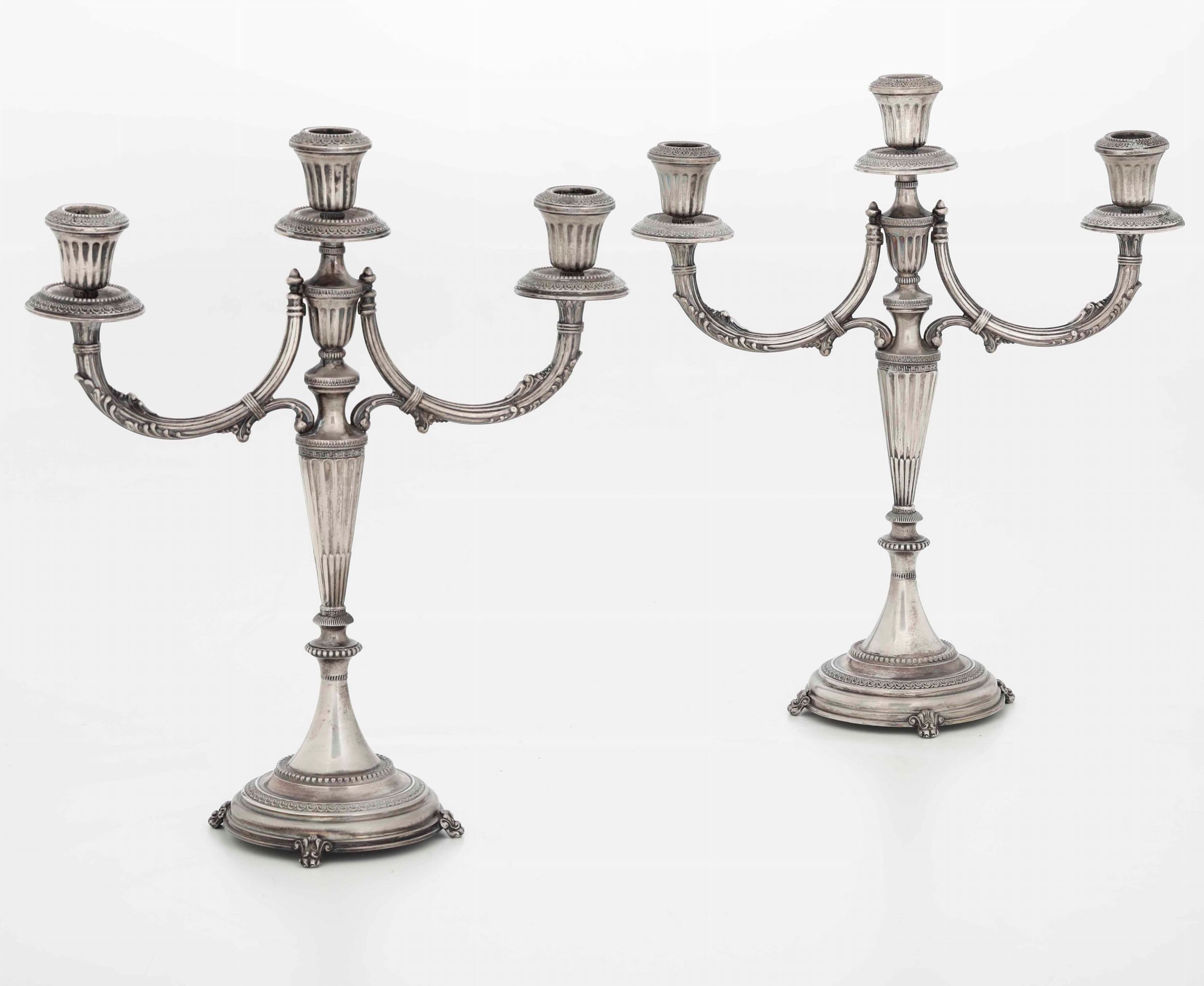 Coppia candelabri in argento. Argenteria artistica italiana del XX secolo. Bollo [..]