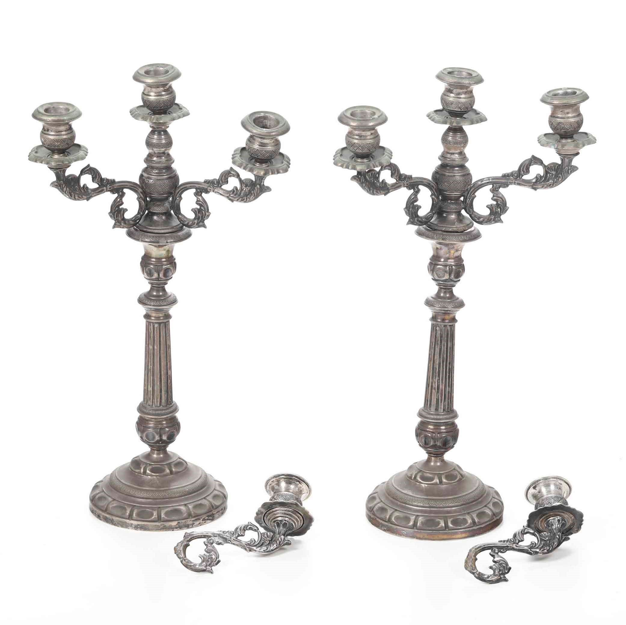 Coppia di candelabri a tre bracci in argento fuso e cesellato. Genova XIX secolo. [..]