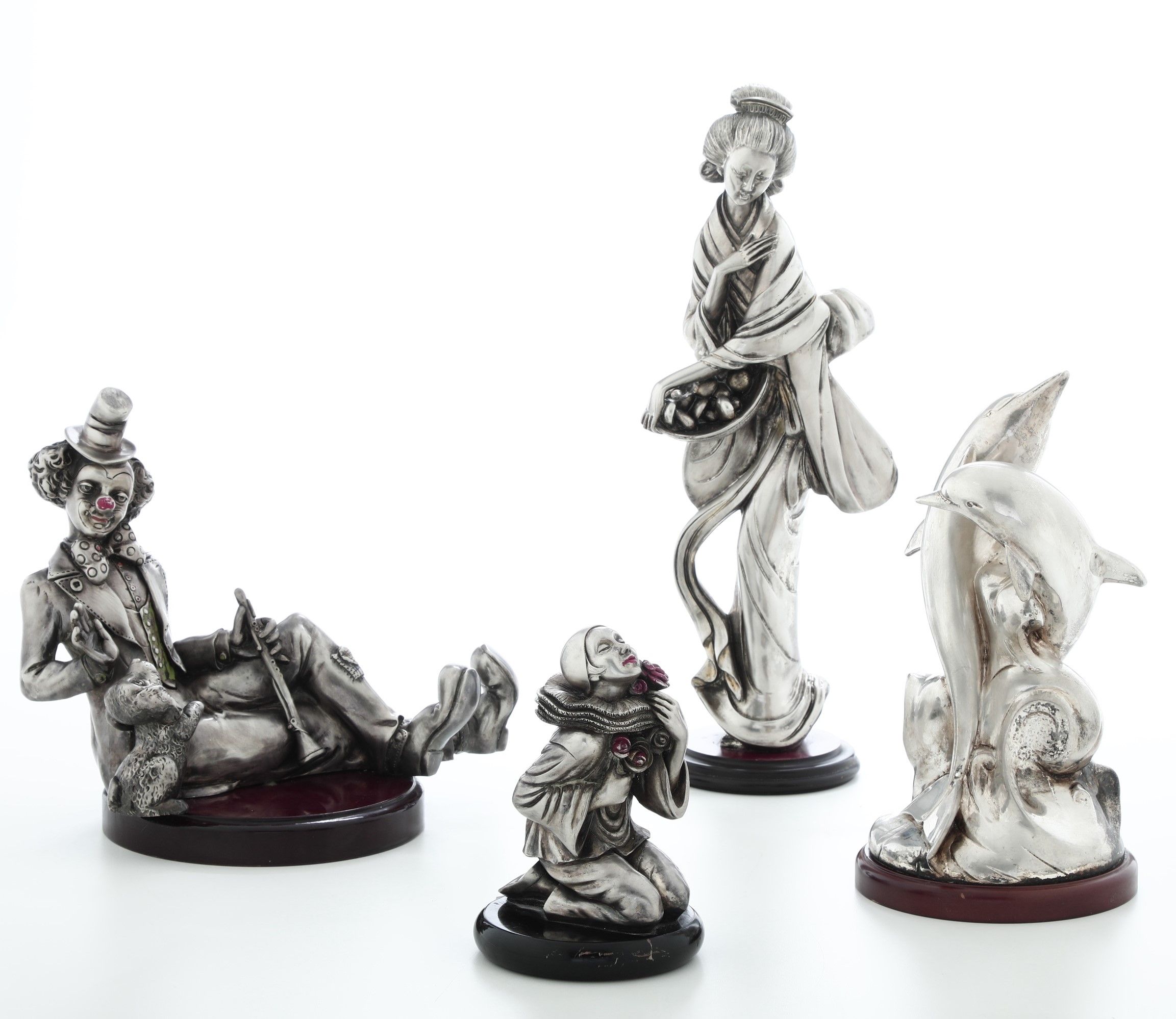Lotto di 4 sculture ricoperte in argento. Differenti argenterie italiane del XX [..]