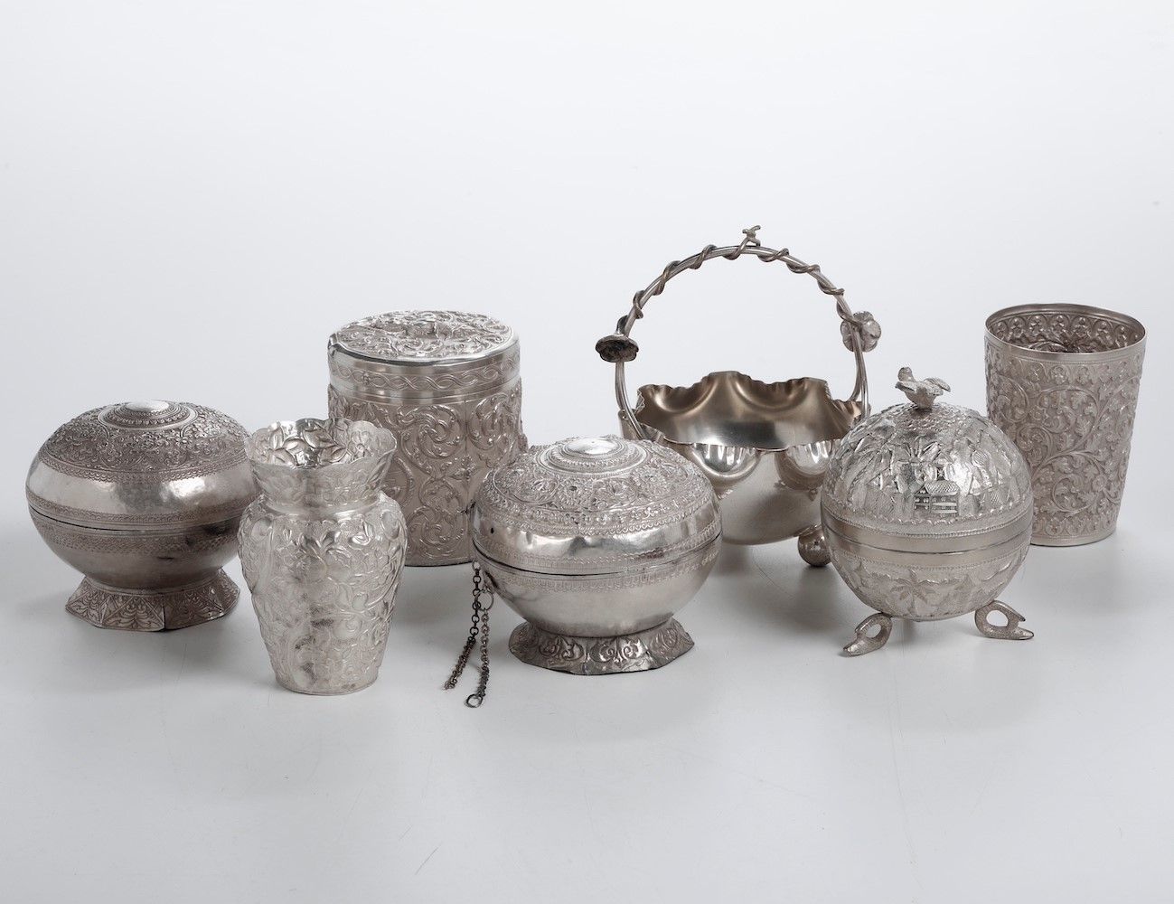 Lotto di oggetti in argento e metallo argentato. Varie manifatture del XX secolo [..]
